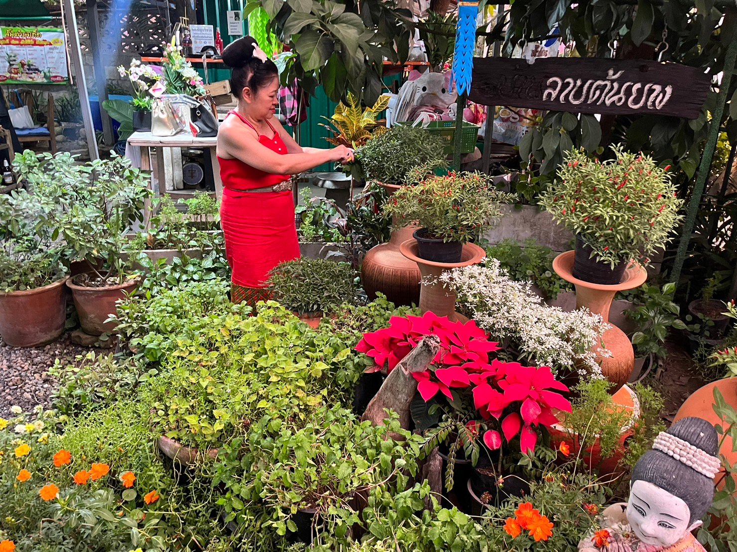 ร้านลาบต้นยางสาขาสันผีเสื้อ วงแหวนรอบสอง ทางไปศาลากลางเชียงใหม่ ขายดี เจ้าของร้านต้องลงมือเก็บผักกับลาบที่ปลูกไว้รอบๆร้าน ให้ลูกค้า