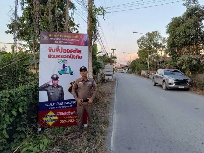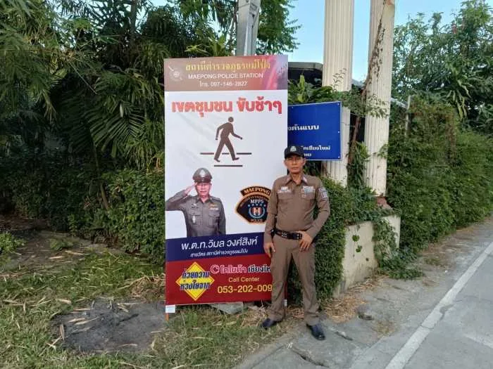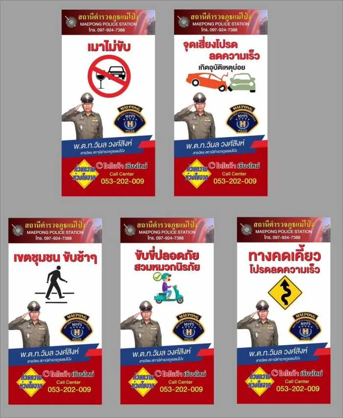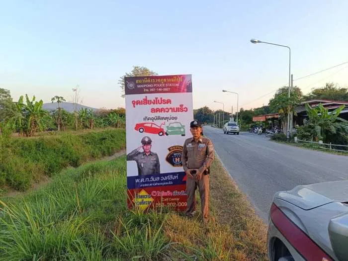 เมื่อวันที่ 17 ธ.ค. 2566 พ.ต.ท.วิมล วงศ์สิงห์ สว.สภ.แม่โป่ง จว.เชียงใหม่ ได้มอบหมายให้เจ้าหน้าที่ตำรวจทำการติดตั้งป้ายรณรงค์ป้องกันอุบัติเหตุทางถนนในช่วงเตรียมการก่อน 7 วันอันตรายในเขตพื้นที่รับผิดชอบ จำนวน 25 ป้าย ประกอบด้วย