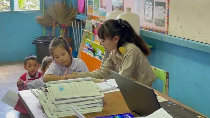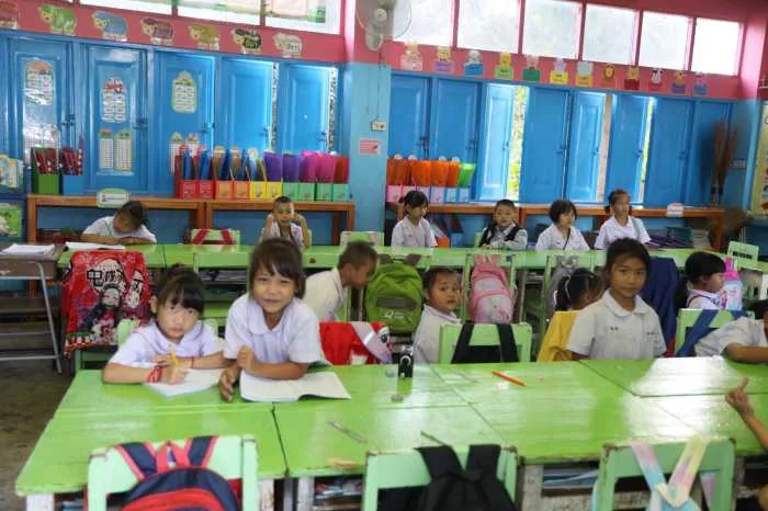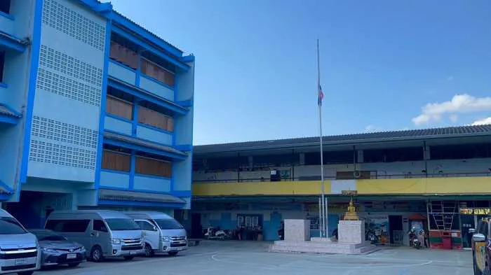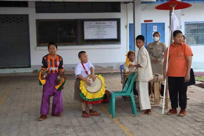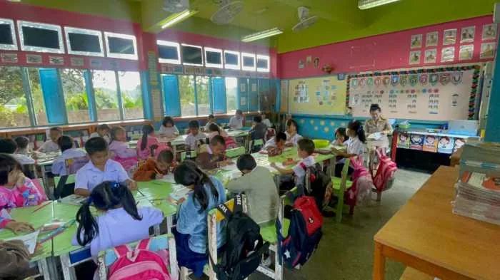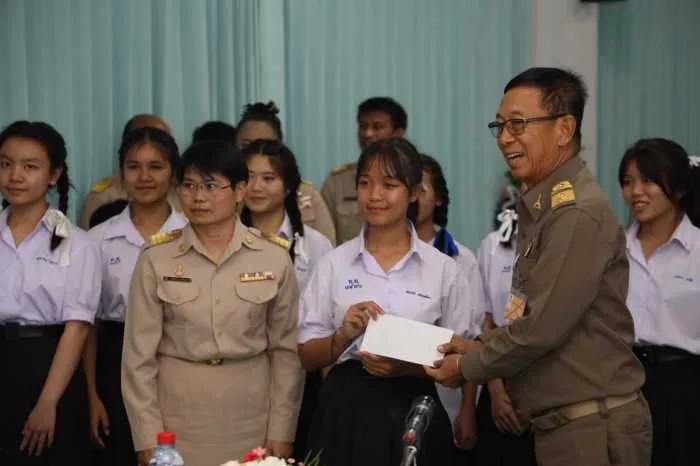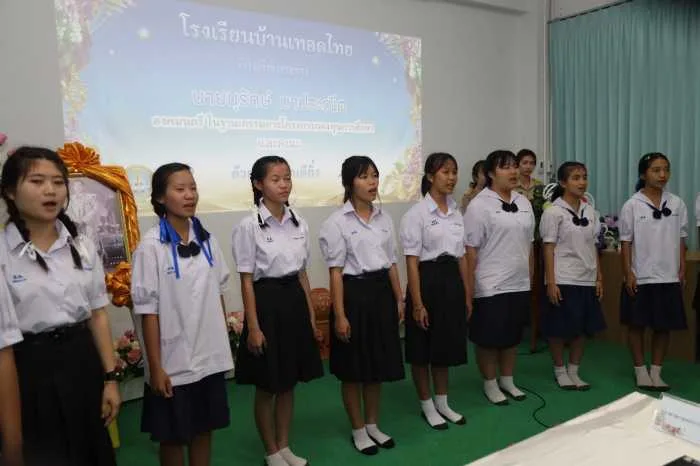 จากนั้นในช่วงบ่าย องคมนตรีพร้อมคณะเดินทางไปยังโรงเรียนบ้านเทอดไทย ต.เทอดไทย อ.แม่ฟ้าหลวง จ.เชียงราย ซึ่งเป็นโรงเรียนในโครงการกองทุนการศึกษา รุ่นที่ 4 ปีการศึกษา 2566 มีนายเกรียงศักดิ์ ฝึกฝน เป็นผู้อำนวยการโรงเรียนบ้านเทอดไทย โรงเรียนบ้านเทอดไทย เป็นโรงเรียนขยายโอกาสทางการศึกษาขนาดใหญ่พิเศษ เป็นโรงเรียนที่ตั้งอยู่บนพื้นที่สูงประชากรในพื้นที่เขตบริการของโรงเรียนเป็นชาวไทยภูเขาเผ่าต่างๆ เช่น จีนฮ่อ ม้ง มูเซอ ลั๊วะ อาข่า ไทยใหญ่ ไทยลื้อ ลีซอ ฯลฯ โดยเปิดทำการเรียนการสอนตั้งแต่ชั้นอนุบาล 2 ไปจนถึงชั้นมัธยมศึกษาปีที่ 6 มีนักเรียนทั้งสิ้น 1,951 คน ข้าราชการครู และบุคลากรทางการศึกษา 86 คน ที่ผ่านมาได้ดำเนินการตามแผนการศึกษาของโครงการฯ มีวิสัยทัศน์ ส่งเสริมการเรียนรู้ควบคู่คุณธรรม ก้าวล้ำเทคโนโลยี มีทักษะชีวิต และทักษะอาชีพพัฒนามาตรฐานวิชาชีพครู มุ่งสู่โรงเรียนคุณภาพ ทำให้เด็กได้เรียนในโรงเรียนที่มีคุณภาพ สำเร็จการศึกษาอย่างภาคภูมิ มีการปลูกฝังวินัย คุณธรรมจริยธรรม พร้อมสร้างกลยุทธ์ การพัฒนาครูให้มีศักยภาพในการจัดกิจกรรมการเรียนการสอน การยกระดับผลสัมฤทธิ์การเรียน พัฒนาคุณลักษณะของนักเรียนให้มีวินัย คุณธรรม จริยธรรม พัฒนาทักษะชีวิตและทักษะอาชีพ และบริหารจัดการโรงเรียนคุณภาพ
