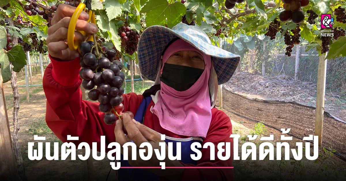 ชึ่งใช้เวลาเพียง 2 ปีก็สามารถเก็บผลผลิตขาย กิโลกรัมละ 90-100 บาท ใน 1ปีสามารถเก็บองุ่นขาย 2 ช่วง ระหว่างเดือนพฤศจิกายน ธันวาคมและมกราคม กับช่วงเดือนพฤษภาคม- มิถุนายน สำหรับลูกค้าอยู่ในเกณฑ์ค่อนข้างดีในช่วงเทศกาลส่งท้ายปีเก่า ต้อนรับปีใหม่
