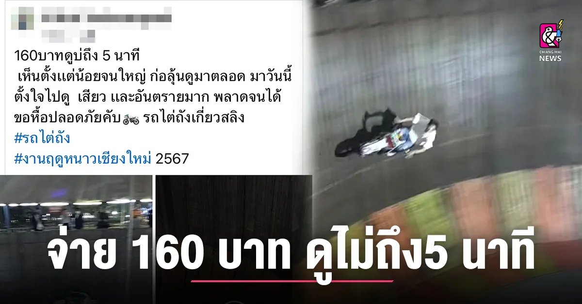 ทั้งนี้เหตุการณ์ดังกล่าว เกิดขึ้นเมื่อคืนวันที่ 11 ม.ค. 2567 ในงานฤดูหนาวจังหวัดเชียงใหม่ มีผู้ชมซื้อบัตรผ่านประตูเข้าชมการแสดงขับขี่รถ จ.ย.ย.ไต่ถัง ปรากฎว่าเกิดอุบัติเหตุรถจ.ย.ย.ล้ม ขณะแสดงต่อหน้าต่อตาผู้ชมจำนวนมาก ผู้ขับขี่ได้รับบาดเจ็บทางกู้ชีพนำตัวส่ง รพ.ในเวลาต่อมา