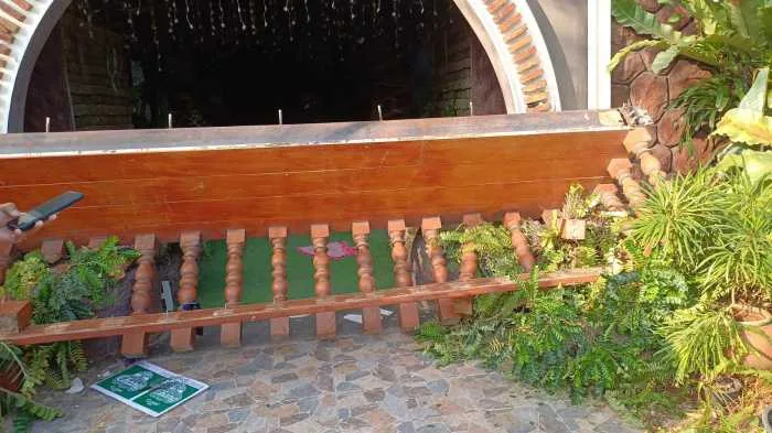 นายโกศล อายุ 61 ปี เจ้าของรีสอร์ท เปิดเผยว่า รีสอร์ทแห่งนี้ให้ลูกสาวดูแล และทราบว่ามีผู้เข้าพักจำนวนหลายคนเป็นคณะจาก อ.สันกำแพง จ.เชียงใหม่ และพังได้รับบาดเจ็บ ประมาณ 10 คน ซึ่งตนจะรีบไปดูแลอาการและกราบขอโทษผู้ที่มาใช้บริการด้วย สาเหตุน่าจะเกิดจากเหล็กที่ใช้ยึดหักและไม่ลึกพอจะต้องแก้ไขจากนี้อย่างดีต่อไป ส่วนผู้บาดเจ็บทั้งหมดตนจะรับผิดชอบเยียวยารักษาหมดทุกราย และขอออัยญาติด้วยที่เกิดอุบัติเหตุขึ้น