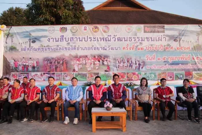 เมื่อเย็นวันที่ 5 กุมภาพันธ์ 2567 เวลา 17.30 น. ที่ผ่านมานายกิ่งเพชร พันธุ์ประยูร นายอำเภอกัลยาณิวัฒนา ได้มอบหมายให้ นายธนภัทร รัตนสมัย ปลัดอำเภอหัวหน้ากลุ่มบริหารงานปกครอง (ปลัดอาวุโส) กล่าวรายงานถึงที่มาและวัตถุประสงค์ของการจัดงาน สืบสานวัฒนธรรมประเพณีชนเผ่า ผลิตภัณฑ์ชุมชนและของดีอำเภอกัลยาณิวัฒนาครั้งที่ 12 ประจำปี พ.ศ. 2567
