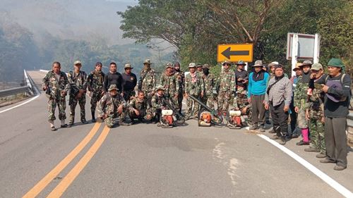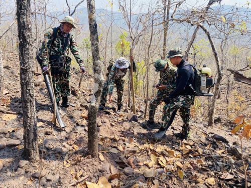 ชุดที่ 1 เข้าบริเวณด้านช้ายเพื่อทำแนวกันไฟ ไปชนไฟ ใช้เวลาประมาณ 1 วัน