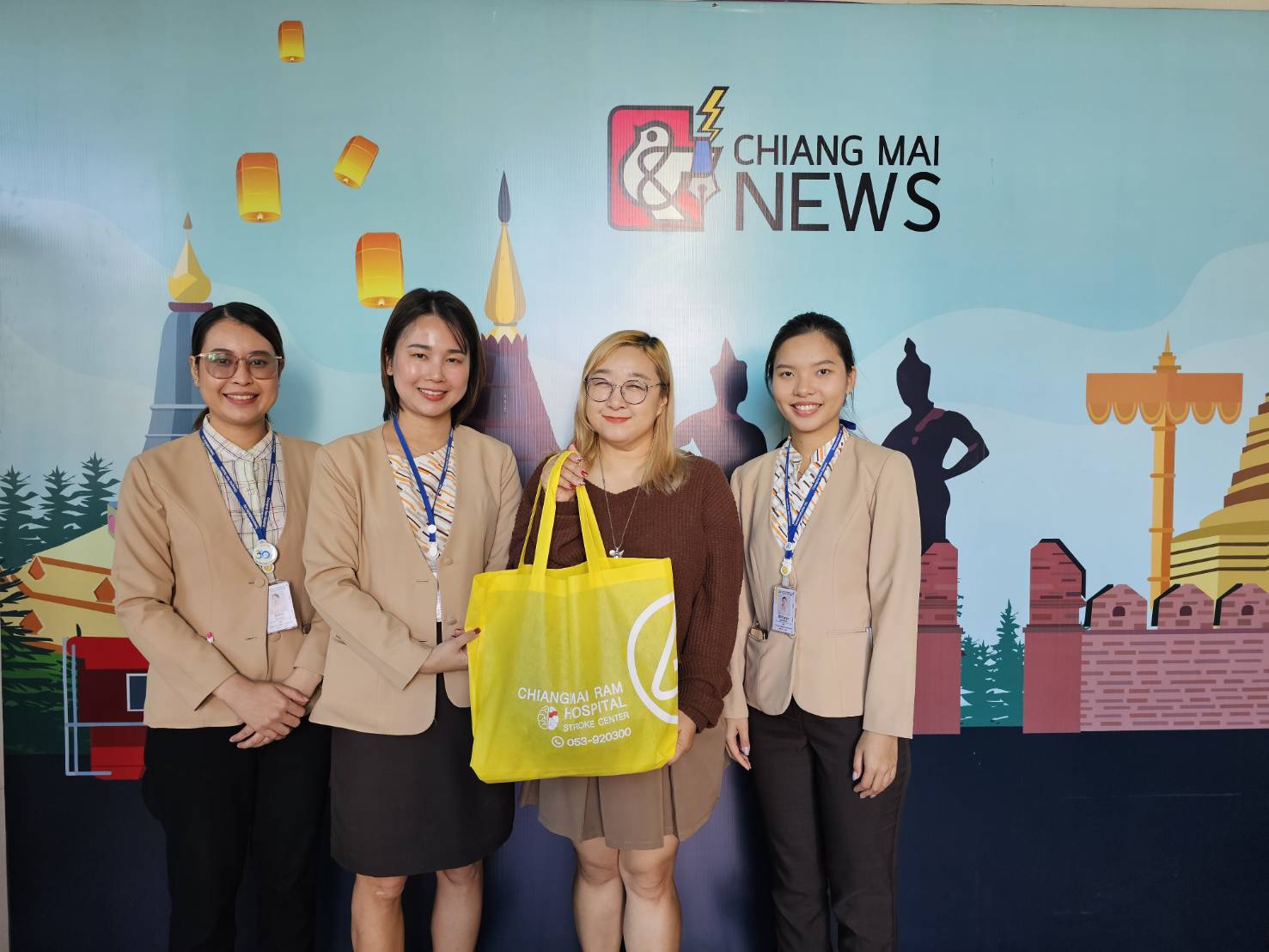 แผนกลูกค้าสัมพันธ์ โรงพยาบาลเชียงใหม่ราม นำโดย จุฬารัตน์ ปัญญาวงศ์, โยธกา จวนข้าว, สิริรัญญา วงศ์คำ เข้ามอบของขวัญส่งความสุขปีใหม่ 2567 แด่กองบรรณาธิการ เชียงใหม่นิวส์ออนไลน์ โดยมี ณัฏฐ์กัญญกร ระบินนิวแมน เป็นตัวแทนรับมอบ ณ สำนักงานเชียงใหม่นิวส์ออนไลน์ ถนนมหิดล