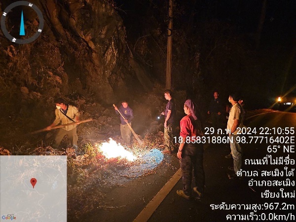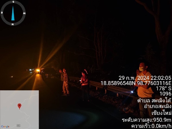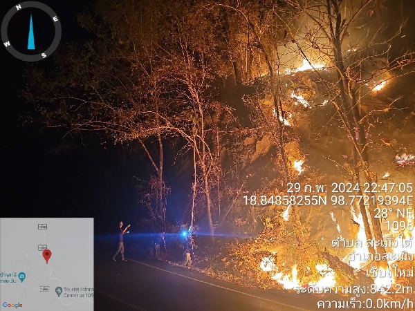 เมื่อวันที่ 1 มี.ค.2567ทาง อำเภอสะเมิง จ.เชียงใหม่ตรวจพบไฟป่าในพื้นที่ ตำบลสะเมิงใต้ จึงได้เข้าควบคุมไฟ ในเวลา 21.30 น. 29 ก.พ.67 ที่ผ่านมา โดยได้ประสานรถน้ำขนาดเล็กและขนาดใหญ่จาก เทศบาลตำบลสะเมิงใต้เข้าดับไฟเข้าร่วมดับไฟ แต่เนื่องจากสภาพภูมิประเทศเป็นพื้นที่สูงชันเป็นหน้าผาในบางจุดรถไม่สามารถเข้าถึงได้ ทำให้สามารถควบคุมไฟป่าได้บางส่วน