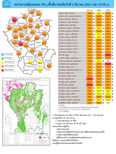 ▶️ 17 จังหวัดภาคเหนือ มีแนวโน้มเพิ่มขึ้นวันที่ 6-9 มีนาคม 2567 และยังคงต้องเฝ้าระวังระบางพื้นที่