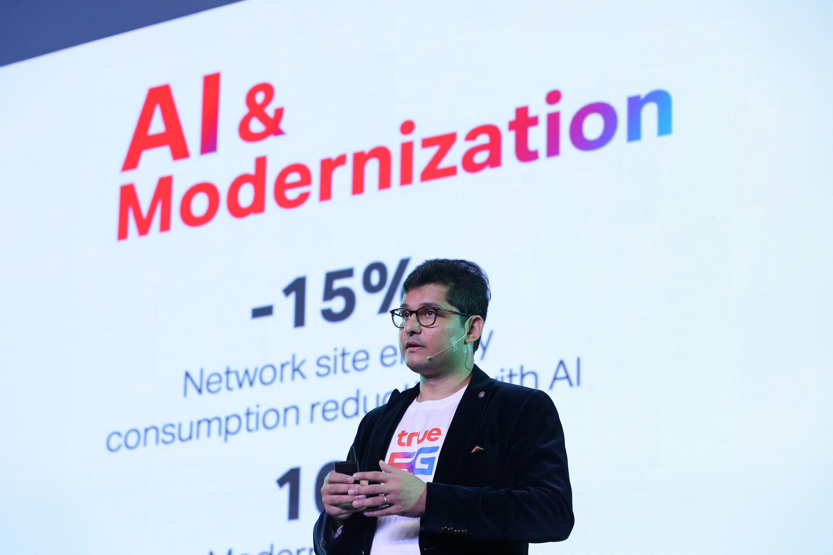 นำเทคโนโลยีปัญญาประดิษฐ์ (AI) และ Machine Learning มาใช้ในปฏิบัติการเครือข่ายเพิ่มมากขึ้น นำเทคโนโลยี AI ที่สามารถตรวจจับและแก้ไขปัญหาได้อย่างรวดเร็วเพื่อยกระดับประสบการณ์ของลูกค้า นอกจากนี้ ยังเป็นกุญแจสำคัญในการบรรลุเป้าหมายด้านสภาพภูมิอากาศ โดยในปี 2567 ทรู จะขยายโซลูชัน AI ที่เป็นสิทธิบัตรของบริษัท ซึ่งสามารถช่วยลดการปล่อยก๊าซเรือนกระจกและลดการใช้พลังงานได้สูงสุดถึง 15% ต่อเสาสัญญาณ ซึ่งเทคโนโลยี AI จะช่วยเสริมแกร่งให้เสาสัญญาณสามารถตอบโจทย์ความต้องการของลูกค้าได้อย่างแท้จริง