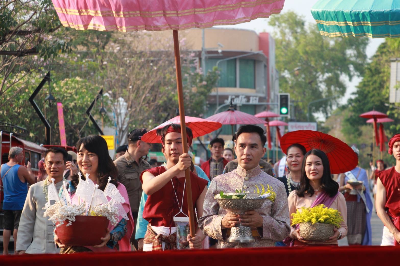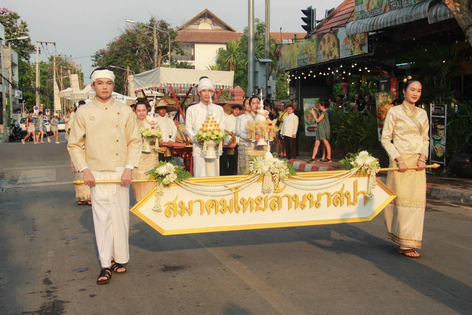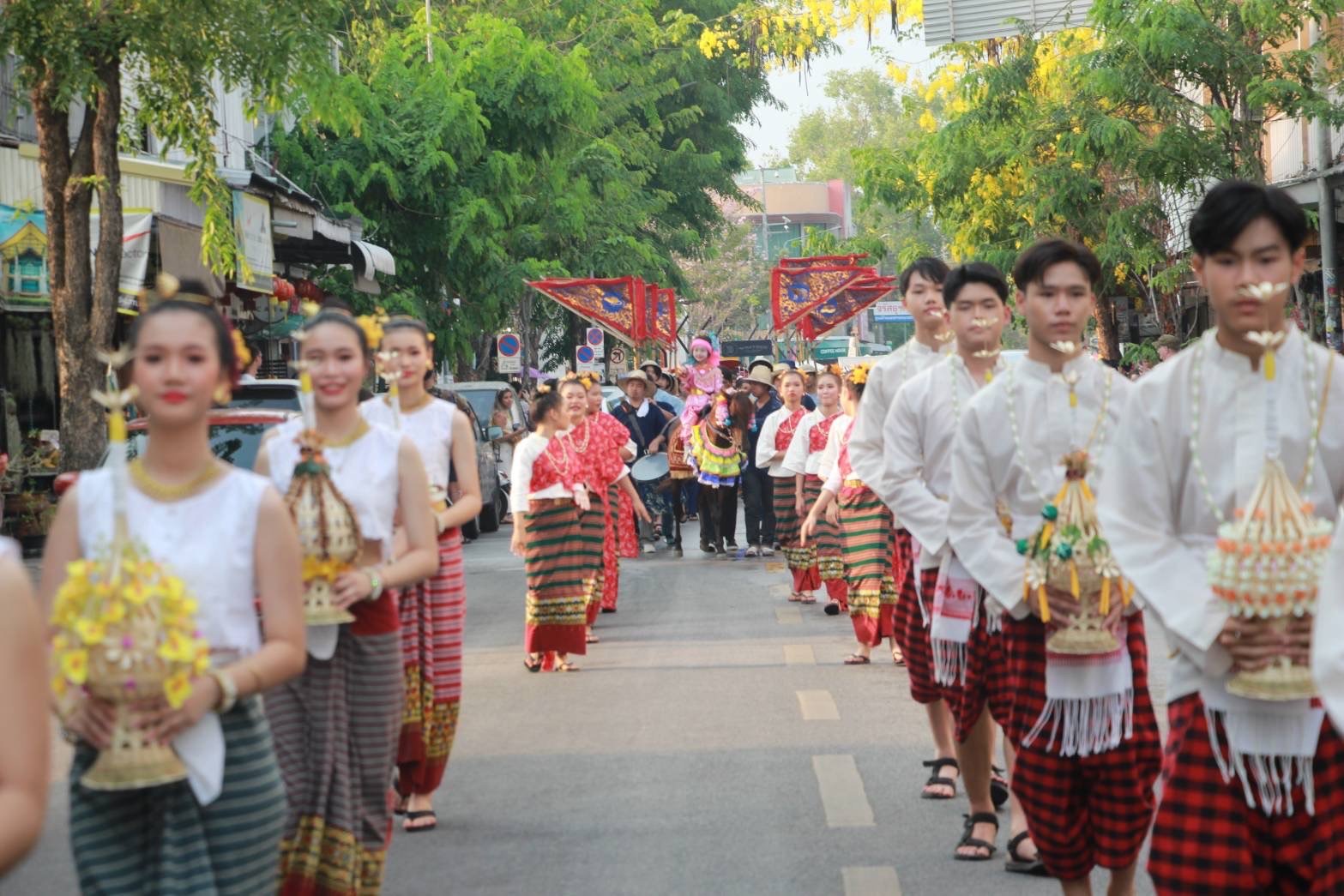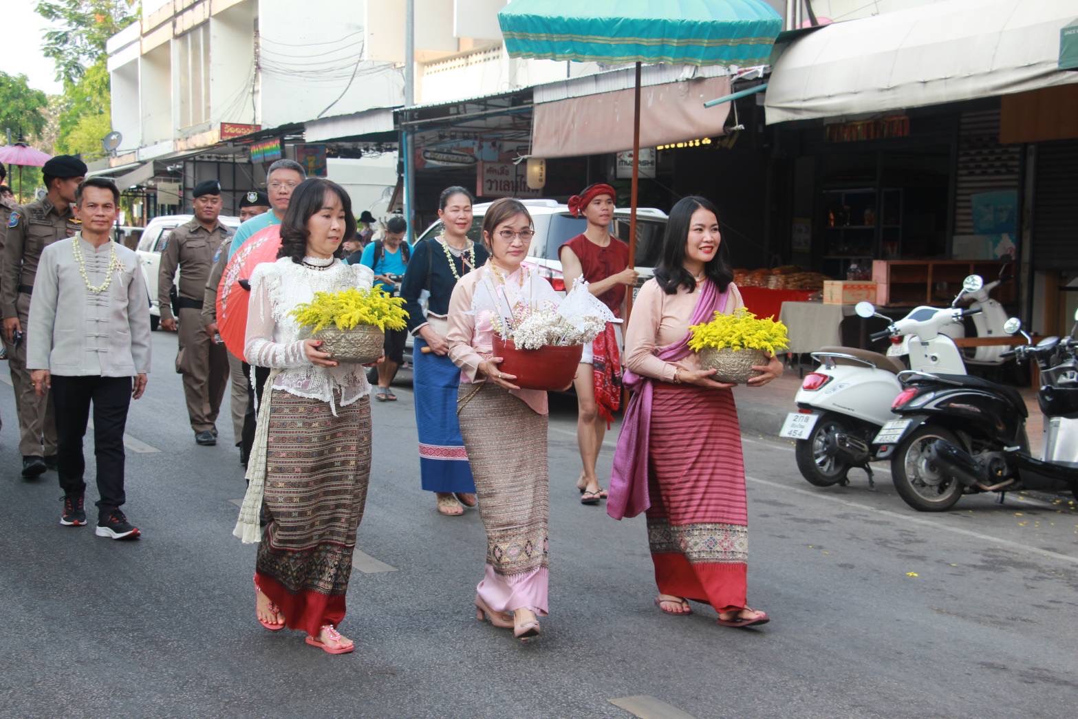 เย็นวันนี้ (12 เม.ย. 67) ที่ลานพระบรมราชานุสาวรีย์สามกษัตริย์ จังหวัดเชียงใหม่ ประชาชนและนักท่องเที่ยวจำนวนมากต่างพากันมารอชมขบวนแห่ “ไหว้สาจุ่มสะหรีปี๋ใหม่เมือง” กันอย่างคึกคักตลอดเส้นทาง ซึ่งขบวนได้เริ่มเดินจากข่วงอนุสาวรีย์สามกษัตริย์ ไปยังวัดพระสิงห์วรมหาวิหาร เพื่อประกอบพิธีสวดเจริญพุทธมนต์น้ำทิพย์ศักดิ์สิทธิ์ ณ วิหารลายคำ วัดพระสิงห์วรมหาวิหาร โดยมี นายวีรพงศ์ ฤทธิ์รอด รองผู้ว่าราชการจังหวัดเชียงใหม่ นางสาวภัทรอนงค์ ณ เชียงใหม่ ผู้อำนวยการ การท่องเที่ยวแห่งประเทศไทย ภูมิภาค ภาคเหนือ ส่วนราชการ หน่วยงานภาคีเครือข่าย ร่วมเดินขบวนในครั้งนี้