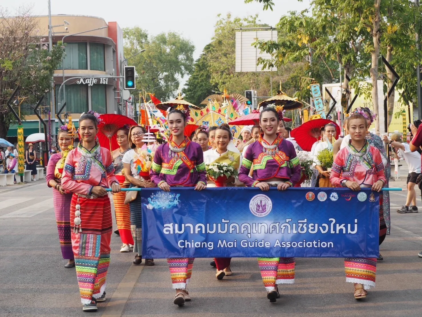 ขบวนแห่ของสมาคมมัคคุเทศก์เชียงใหม่ ประกอบด้วย ผู้ร่วมขบวน 70 คน ขบวนแห่เสลี่ยงน้ำทิพย์ ขบวนเครื่องแห่เครื่องสักการะ ขบวนช่างฟ้อน ขบวนแห่ฆ้อง กลอง ฉาบ ล้านนา ( กลองซิงมอง ) และขบวนการละเล่นล้านนา คณะกรรมการ และสมาชิก แต่งกายด้วยชุดล้านนา ผ้าพื้นเมือง ร่วมขบวนแห่ คึกคักตลอดเส้นทาง