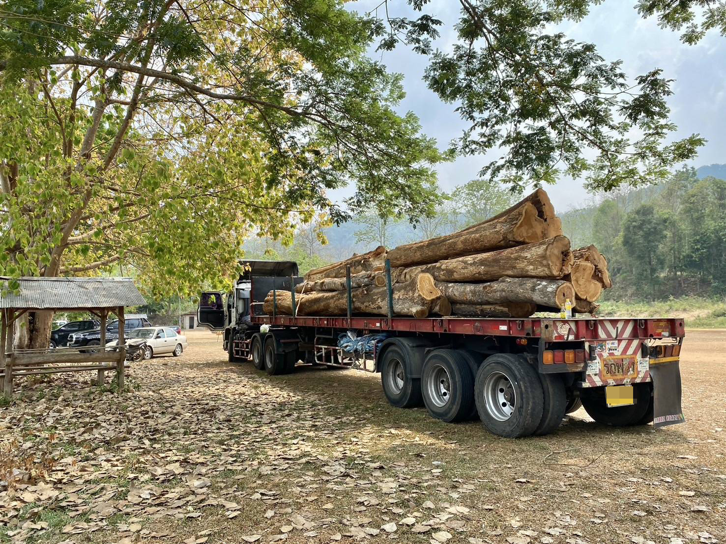 ไปถึงที่หมายตรวจพบ รถบรรทุกเทเลอร์ 2 คัน บรรทุกไม้สักท่อนยังไม่ได้แปรรูป จำนวนรวม 17 ท่อน ตรวจสอบเบื้องต้นทุกท่อนไม่มีดวงตราของราชการประทับ จอดบริเวณสนามกีฬาหมู่บ้าน มีผู้ขับชื่อ นายเอ (นามสมมุติ) ซึ่งให้การว่า นายบี (นามสมมุติ) จ้างให้บรรทุกไม้ เป็นไม้ที่รับซื้อจาก น.ส.ซี (นามสกุล) ซึ่งอ้างว่าตัดจากที่กรรมสิทธิ์ของตนเอง เบื้องต้นเจ้าหน้าที่ได้ร่วมกันตรวจสอบพื้นที่จุดที่มีการตัดไม้พบว่า เป็นพื้นที่ป่าสงวนฯ จึงดำเนินการตรวจยึดของกลางทั้งไม้สักท่อน รถบรรทุกเทเลอร์ และควบคุมบุคคลทั้ง 3 ราย ส่ง พงส.สภ.แม่ออน ดำเนินคดีตามกฎหมายต่อไป