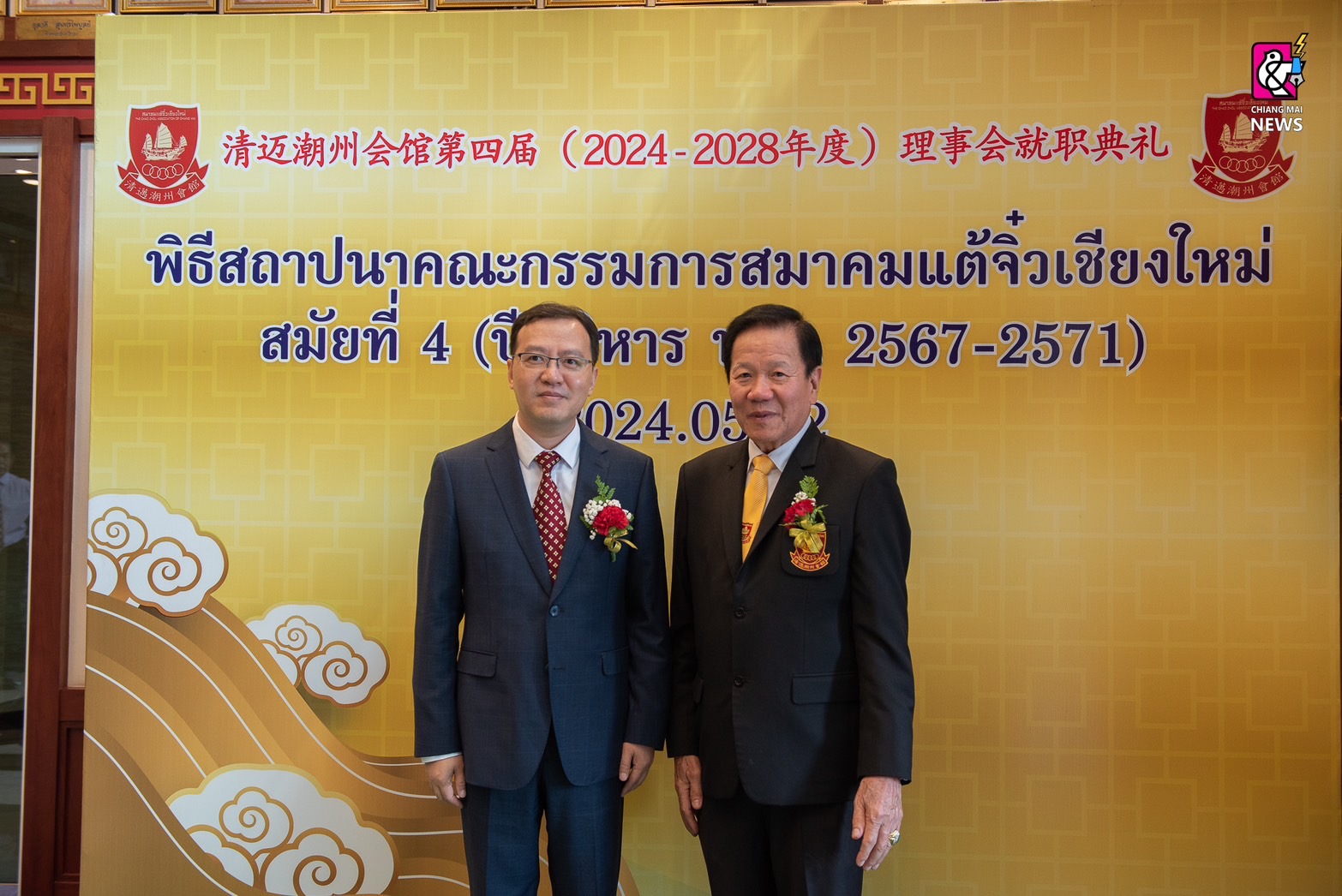เมื่อเร็ว ๆ นี้ นายสวัสดิ์ เจริญสุข นายกสมาคมแต้จิ๋วเชียงใหม่ สมัยที่ 4, นายเฉิน ไห่ผิง กงสุลใหญ่สาธารณรัฐประชาชนจีนประจำเชียงใหม่, พล.ต.ต.ไพศาล ลือสมบูรณ์ รอง ผบช.ภ.5 และตัวแทนผู้ว่าราชการจังหวัดเชียงใหม่ และแขกผู้มีเกียรติ ร่วมเป็นสักขีพยานในการสถาปนา นายกสมาคมแต้จิ๋วเชียงใหม่ สมัยที่ 4