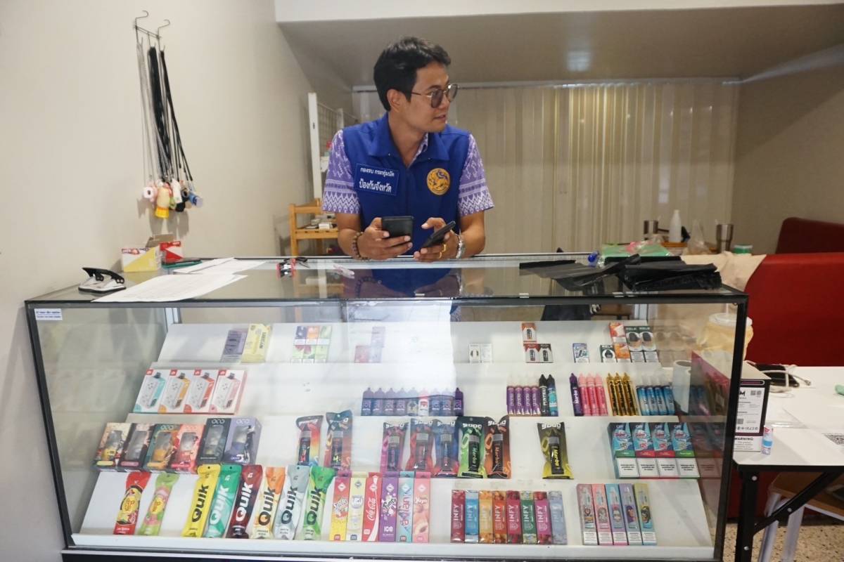 เจ้าหน้าที่จึงได้วางแผนเข้าตรวจสอบร้านดังกล่าวพบว่าร้านมีการติดฟิล์มสีขาวขุ่นอำพรางไม่ให้มีการมองจากข้างนอกเข้าไปเห็นในบริเวณด้านใน และมีกล้องวงจรปิดรอบทิศทางเพื่อดูสถานการณ์จากภายนอก แต่ผู้ซื้อจะรู้กันภายในกลุ่มไลน์ เฟสบุ๊ค หรือสื่อสังคมต่างๆ ซึ่งเจ้าหน้าที่ได้ทำการเข้าตรวจสอบร้านจำหน่ายบุหรี่ไฟฟ้าจำแล้ว 3 ร้าน คือ