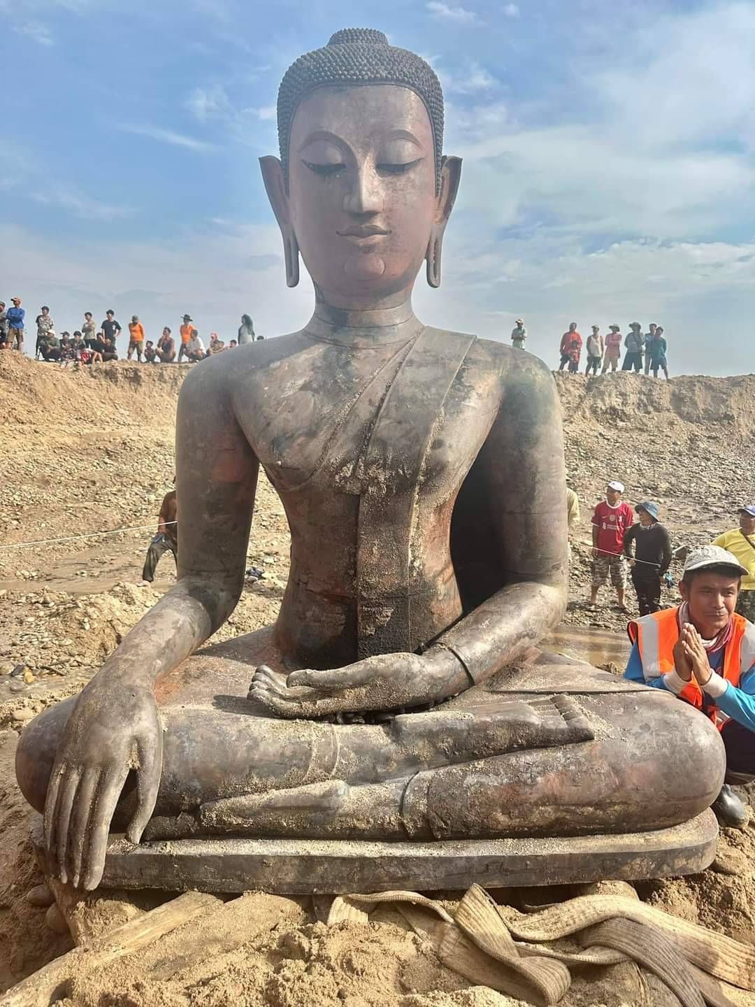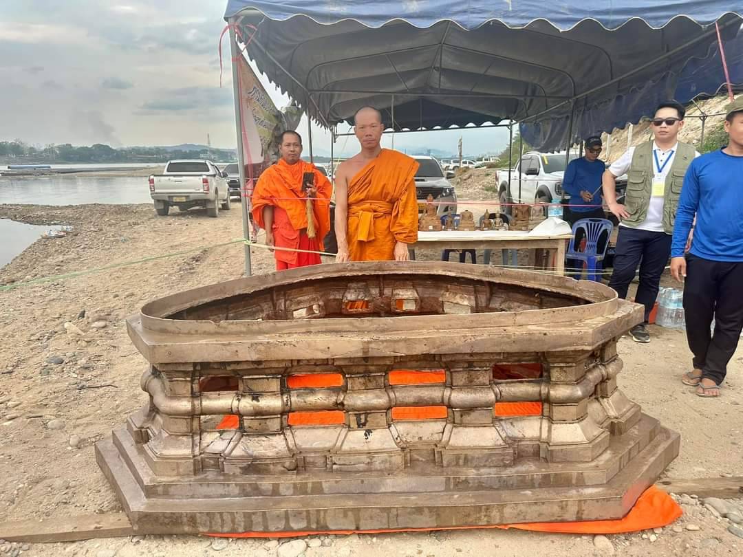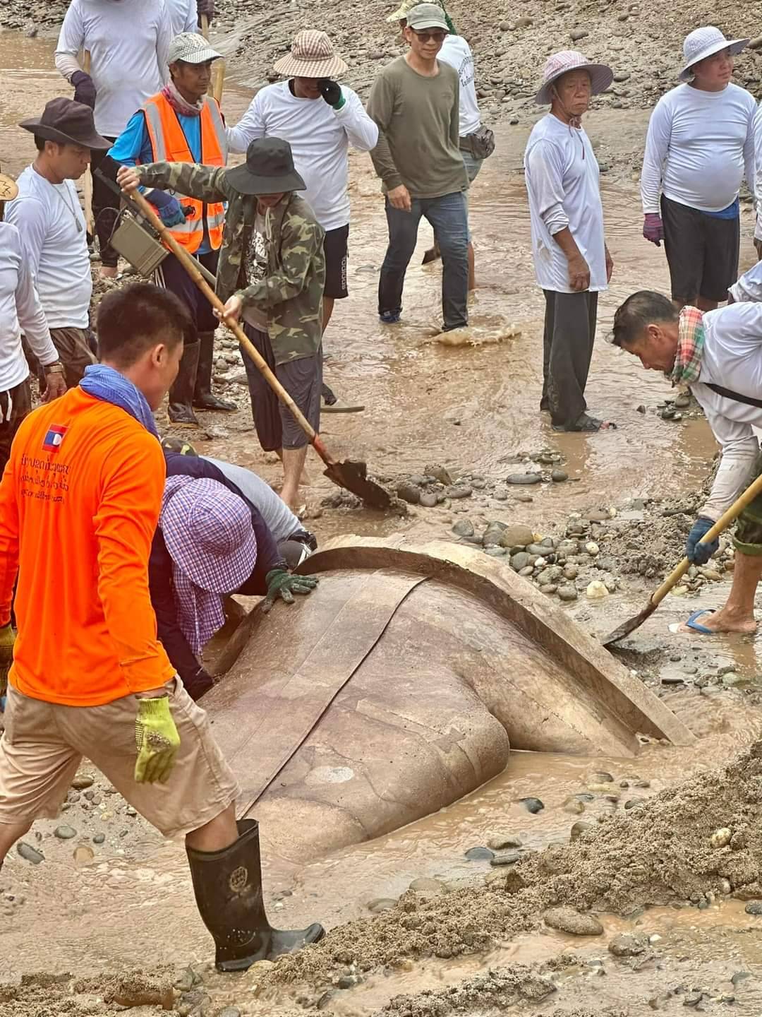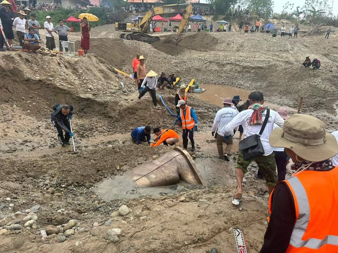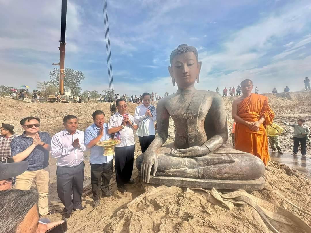 ชาวลาวสุดยินดี ขุดพบพระพุทธรูปปางมารวิชัยเนื้อสำริดองค์ประธาน ขนาดหน้าตักประมาณ 1 ม. ในแม่น้ำโขง