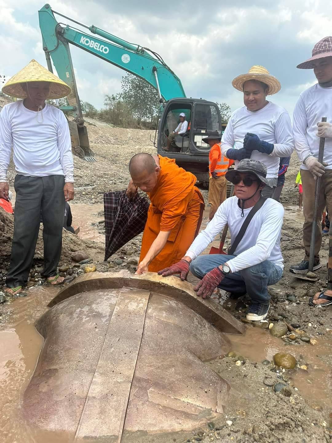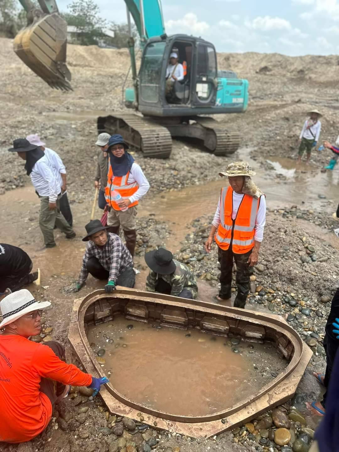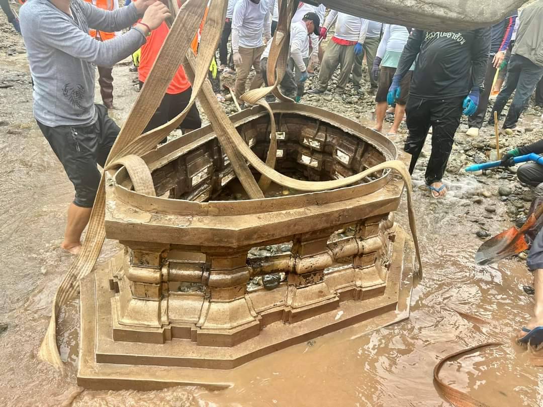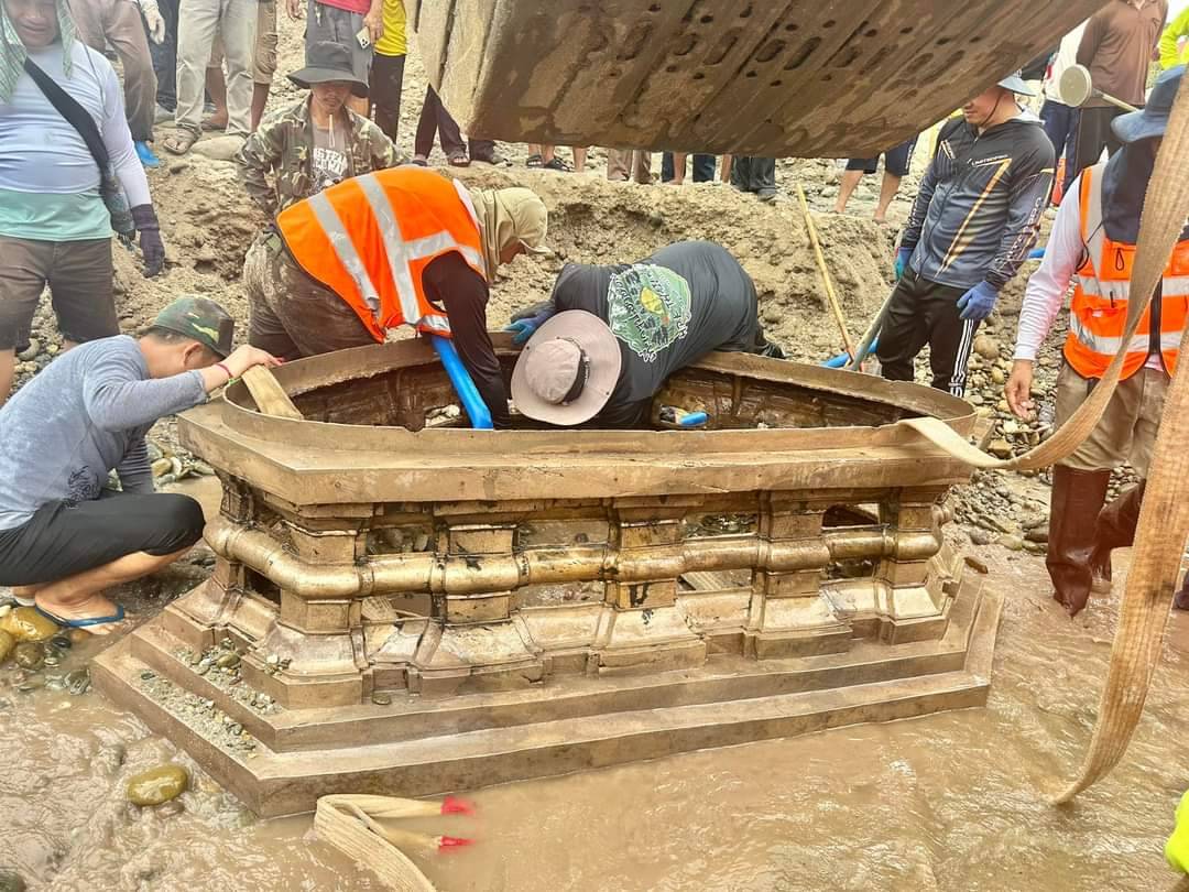 ชาวลาวสุดยินดี ขุดพบพระพุทธรูปปางมารวิชัยเนื้อสำริดองค์ประธาน ขนาดหน้าตักประมาณ 1 ม. ในแม่น้ำโขง