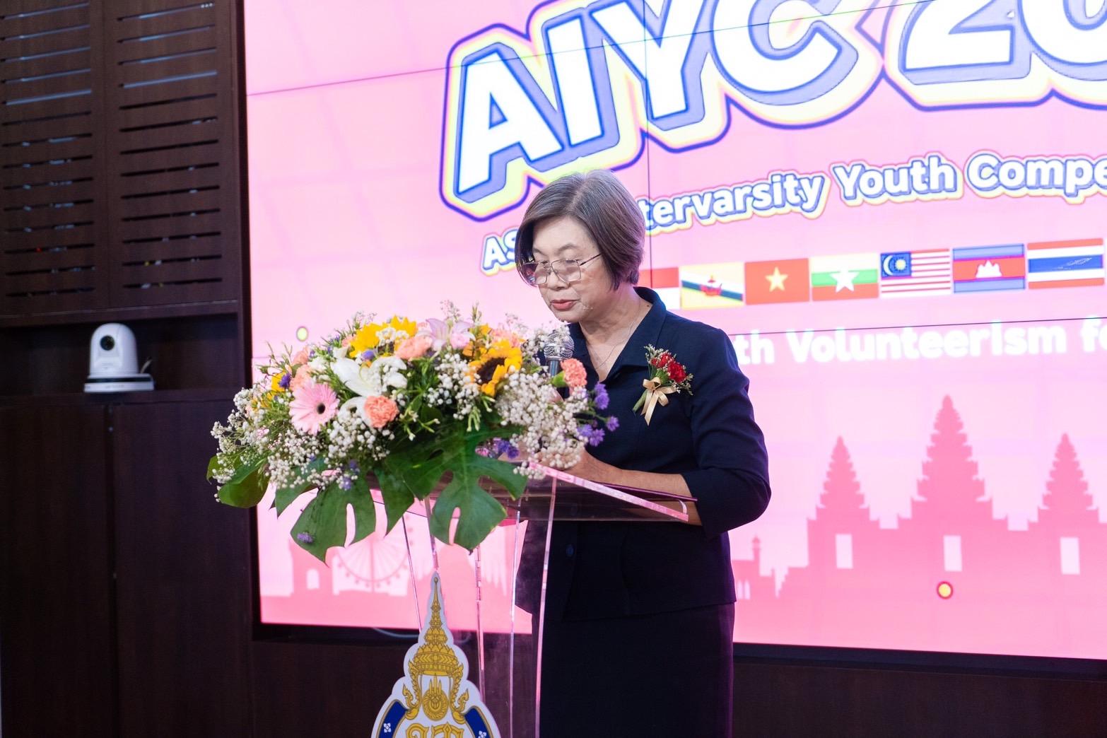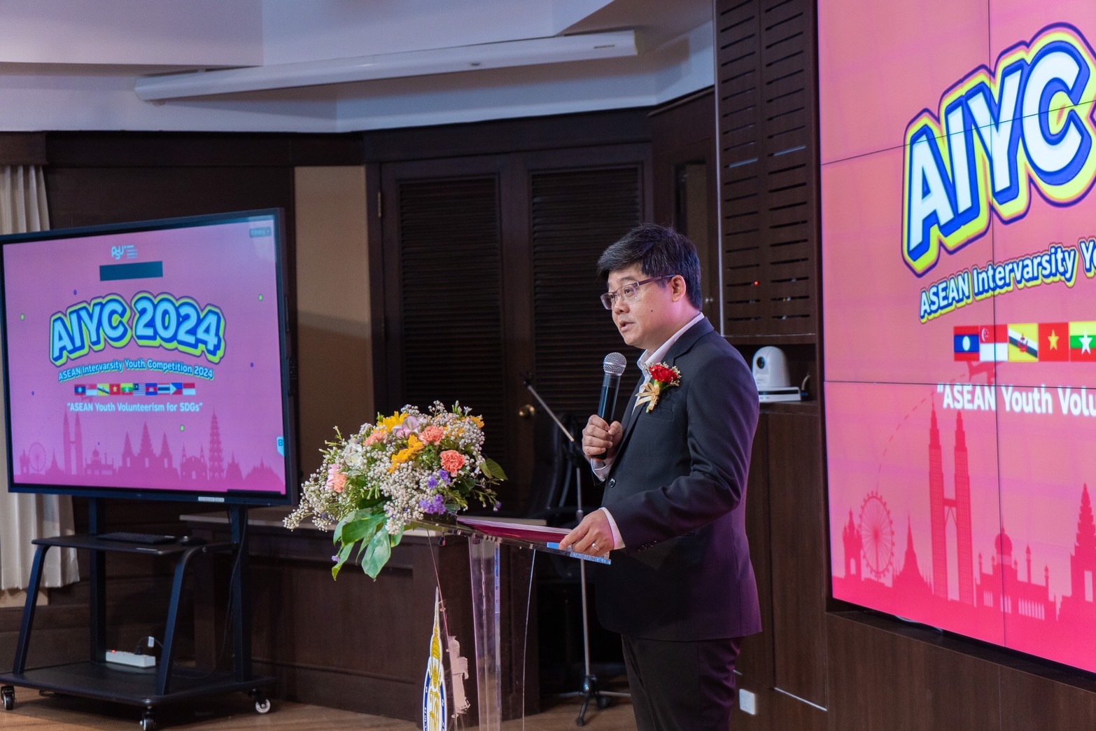 รศ. ดร.วิโรจน์ ยูรวงศ์ รองอธิการบดีฝ่ายพัฒนานักศึกษาและศิษย์เก่าสัมพันธ์ กล่าวว่า การจัดงาน ASEAN Intervarsity Youth Competition 2024 ภายใต้หัวข้อ “ASEAN Youth Volunteerism for SDGs” ปัจจุบันมีการเปิดพื้นที่ให้เยาวชนได้มีการเรียนรู้และการแลกเปลี่ยนที่เปิดกว้าง เยาวชนมีโอกาสที่จะมีส่วนร่วมในการแก้ไขปัญหา และยังช่วยส่งเสริมการพัฒนาอย่างยั่งยืน การลงมือทำงานในชุมชนเป็นวิธีที่ดีวิธีหนึ่งในการเริ่มต้นให้เยาวชนมีส่วนร่วมในการพัฒนาประเทศ การทำงานจิตอาสาในโครงการที่เชื่อมโยงกับเป้าหมายการพัฒนาที่ยั่งยืน (SDGs) เป็นการทำให้เยาวชนเข้าใจถึงปัญหาที่เกิดขึ้นในชุมชน และสร้างการเรียนรู้เกี่ยวกับวิธีที่สามารถช่วยเหลือในการแก้ไขปัญหาในชุมชน สังคม และประเทศต่อไป
