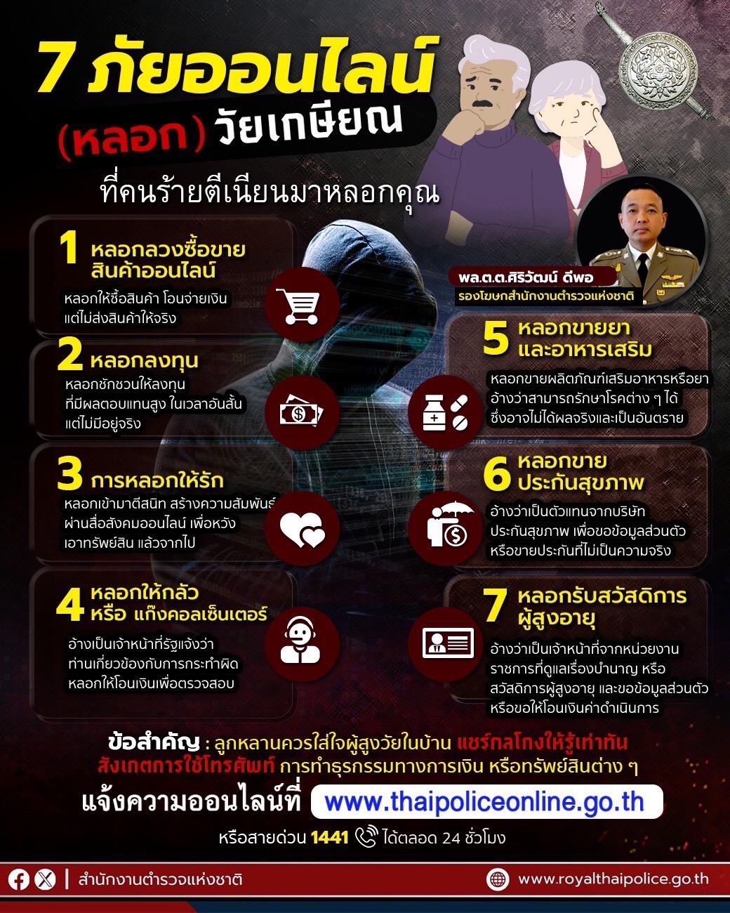 สำนักงานตำรวจแห่งชาติ เตือน 7 ภัยออนไลน์วัยเกษียณ ที่คนร้ายตีเนียนมาหลอกลวง