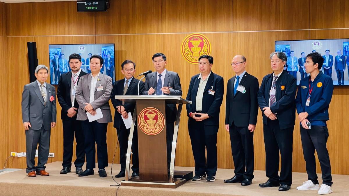 หมออุ๋ย นพ.นิยม สส.แพร่ เขต 2 ประธานคณะ กมธ.วิสามัญพิจารณาศึกษากฎหมาย และมาตรการควบคุมกำกับบุหรี่ไฟฟ้าในประเทศไทย และคณะ แถลงข่าวกฎหมายและมาตรการควบคุมบุหรี่ไฟฟ้า