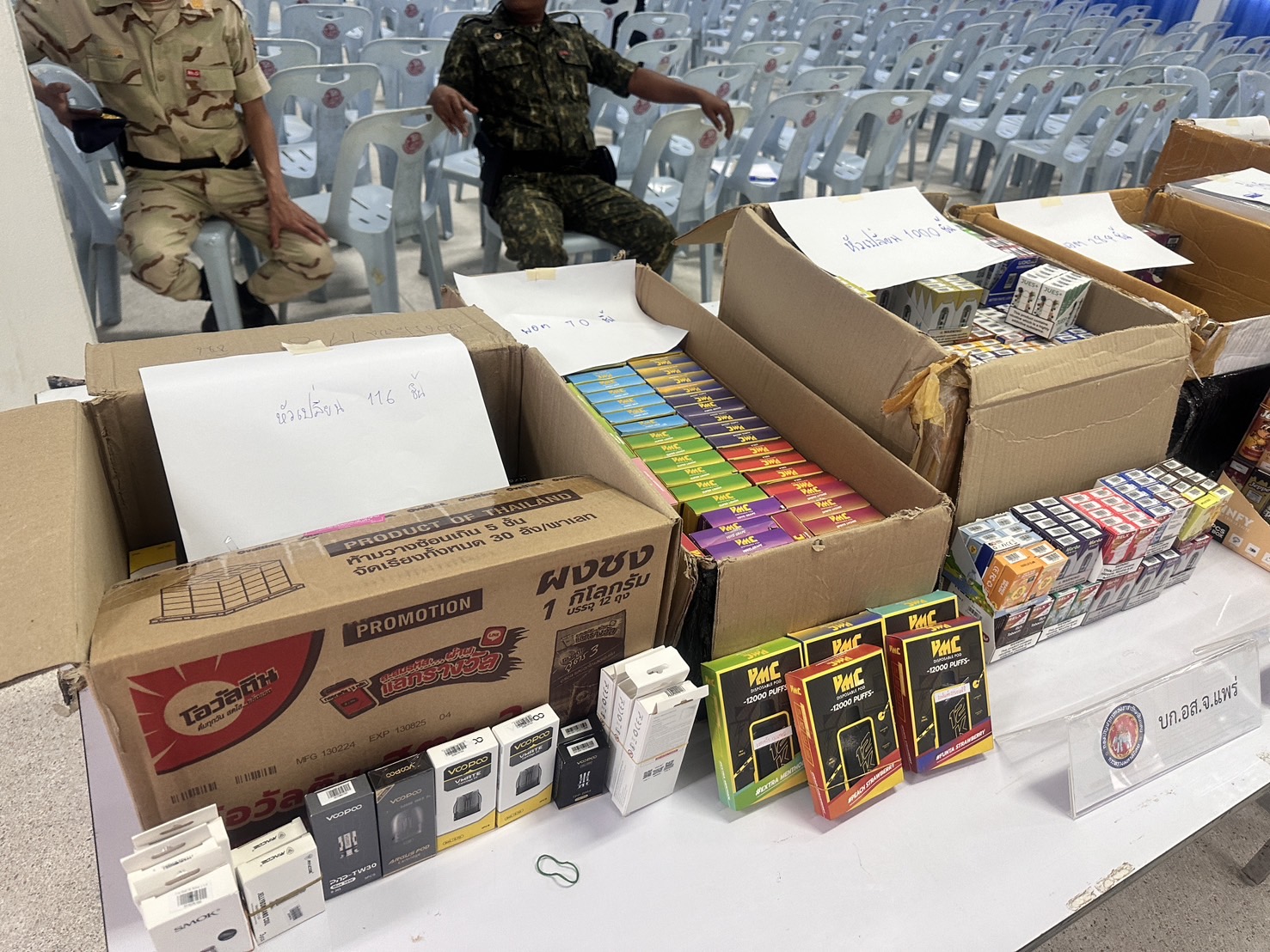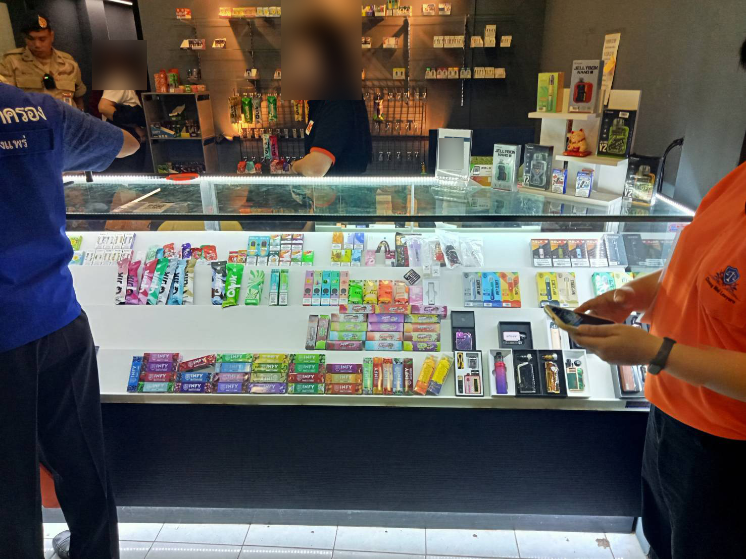 จากนั้น กำลังเจ้าหน้าที่ยังได้เข้าตรวจยึดของกลางที่ร้านค้าแห่งที่ 2 ตั้งอยู่บริเวณตรงข้ามทางเข้าห้างมาร์คโฟร์สรรพสินค้า ยึดได้ของกลางมูลค่าเกือบ 4 แสนบาท รวมของกลางที่ตรวจยึดได้ครั้งนี้มีมูลค่าประมาณ 9.3 แสนบาท โดยนำตัวเจ้าของร้านจำหน่าย มาดำเนินคดีตามกฎหมาย การมีไว้ในครอบครอง และขายเป็นความผิดตาม พ.ร.บ. ศุลกากร พ.ศ. 2560 ซึ่งมีโทษจำคุกไม่เกิน 5 ปี หรือปรับ 4 เท่า ของราคาของ รวมค่าอากรเข้าด้วยแล้ว หรือทั้งจำทั้งปรับ ส่วนผู้สูบบุหรี่ไฟฟ้าในเขตปลอดบุหรี่ มีความผิดตาม พ.ร.บ. ควบคุมผลิตภัณฑ์ยาสูบ พ.ศ. 2560 มีโทษปรับทางพินัยไม่เกิน 5,000 บาทด้วย