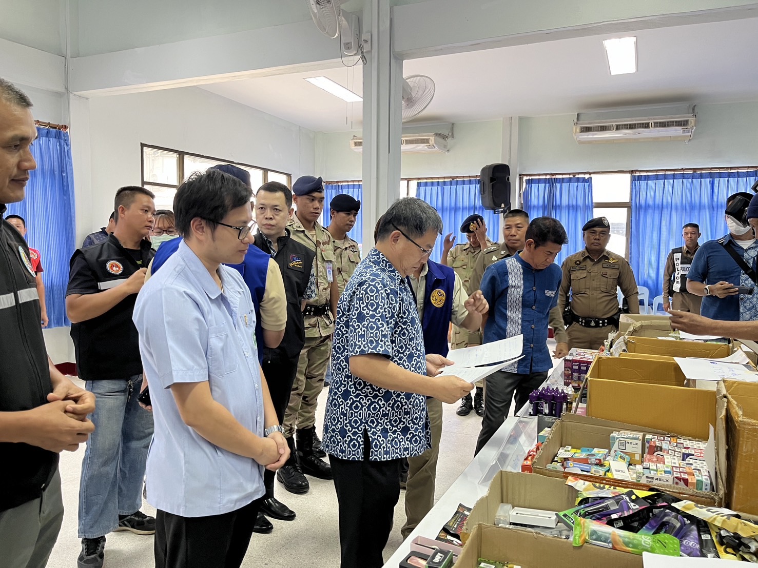 ด้านนายชุติเดช มีจันทร์ ผู้ว่าราชการจังหวัดแพร่ กล่าวว่า การจับกุมในครั้งนี้ต้องขอบคุณพลเมืองดีที่แจ้งเบาะแสผ่านศูนย์ดำรงธรรมจังหวัดแพร่ จนนำไปสู่การจับกุมได้ของกลางจำนวนมาก ซึ่งจังหวัดแพร่ได้ดำเนินการตามนโยบายของ นายเศรษฐา ทวีสิน นายกรัฐมนตรี และนายอนุทิน ชาญวีระกูล รองนายกรัฐมนตรีและรัฐมนตรีว่าการกระทรวงมหาดไทย ในการกวาดล้างบุหรี่ไฟฟ้า และสิ่งผิดกฎหมายในเชิงรุกต่อเนื่อง โดยในวันเดียวกันนี้ศูนย์ป้องกันและปราบยาเสพติดอำเภอสูงเม่น สามารถจับกุมผู้ลักลอบจำหน่ายยาบ้า ยึดของกลางได้ 195,000 เม็ด ขอบคุณทุกภาคส่วนที่แจ้งเบาะแส ทำให้ฝ่ายปกครองเข้าดำเนินการกวาดล้างจับกุม เพื่อความปลอดภัยของเด็ก เยาวชน ลูกหลานคนเมืองแพร่ต่อไป