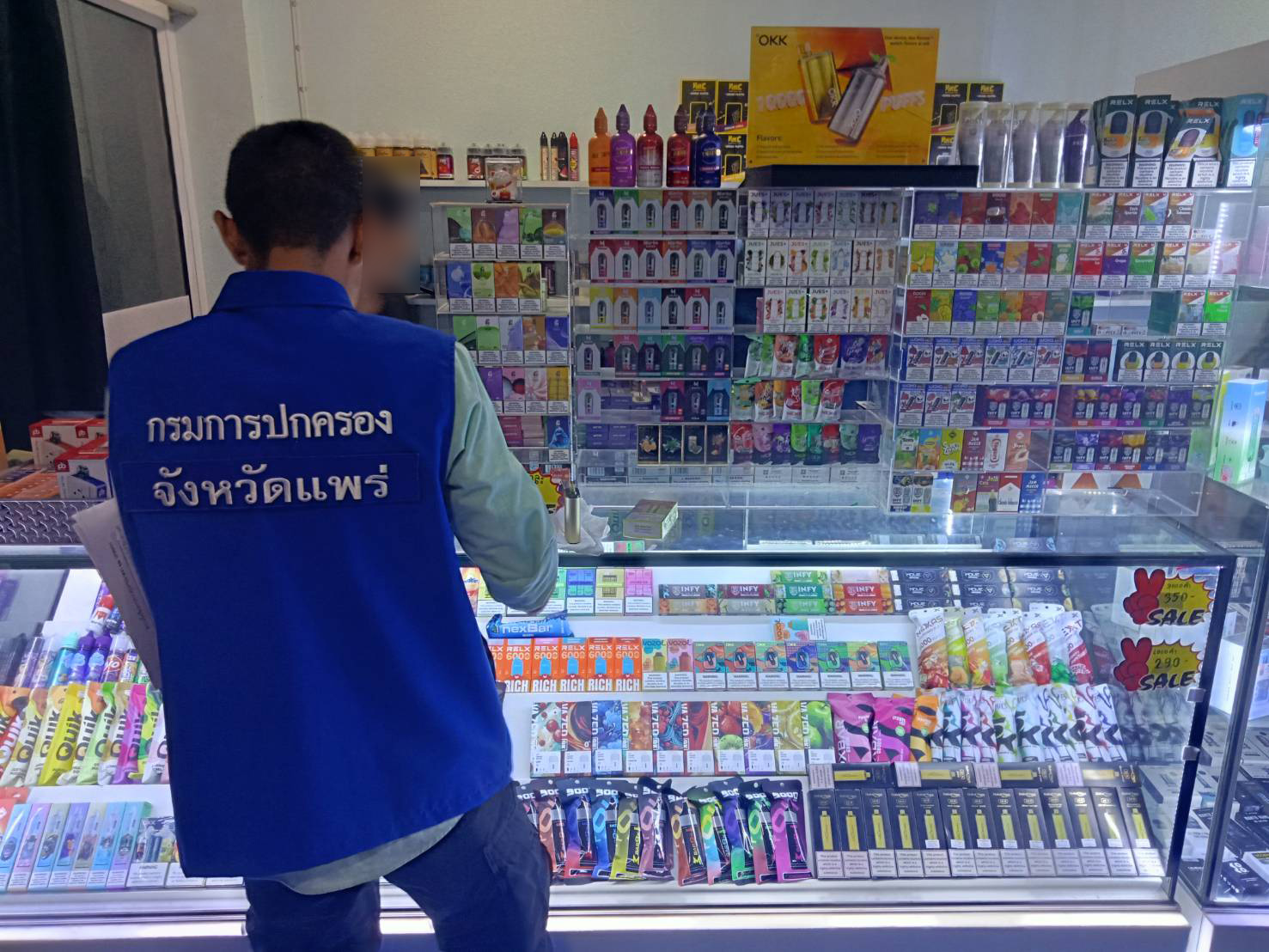 ภายหลังจากศูนย์ดำรงธรรมจังหวัดแพร่ ได้รับแจ้งเบาะแสจากพลเมืองดีว่า มีร้านค้าลักลอบจำหน่ายบุหรี่ไฟฟ้าภายในกาดน้ำทอง ทางฝ่ายปกครองจังหวัดแพร่ และอำเภอเมืองแพร่ จึงนำกำลังอาสารักษาดินแดน (อส.) และเจ้าหน้าที่สำนักงานคุ้มครองผู้บริโภค เข้าตรวจค้นรานค้าแห่งหนึ่งภายในกาดน้ำทอง ยึดได้ของกลางเป็นอุปกรณ์ที่ใช้สูบ และน้ำยาบุหรี่ไฟฟ้าที่ปรับแต่งกลิ่น และรสชาติหลายรูปแบบ มูลค่า 5 แสนกว่าบาท