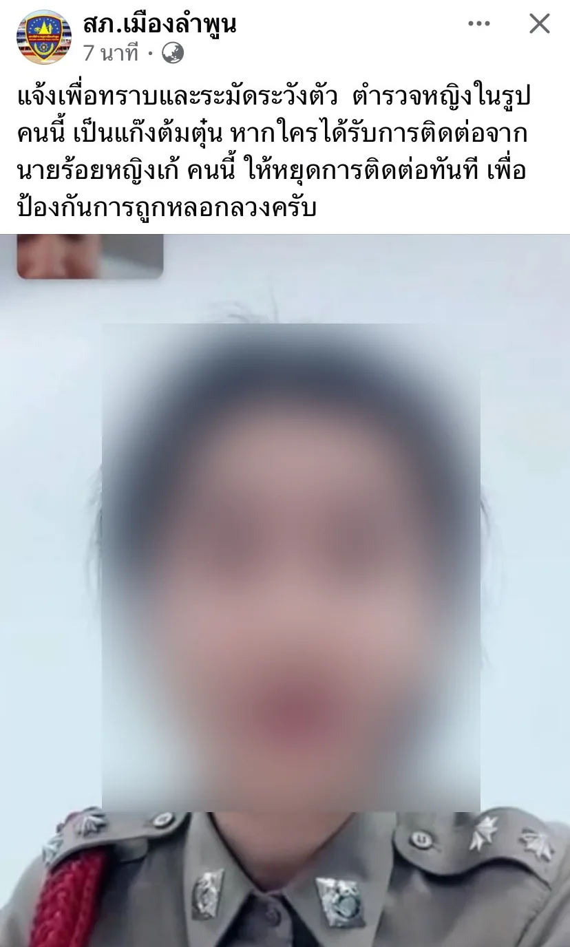 สภ.เมืองลำพูน แจ้งเตือนให้ระมัดระวัง “ตำตรวจหญิงเก๊”
