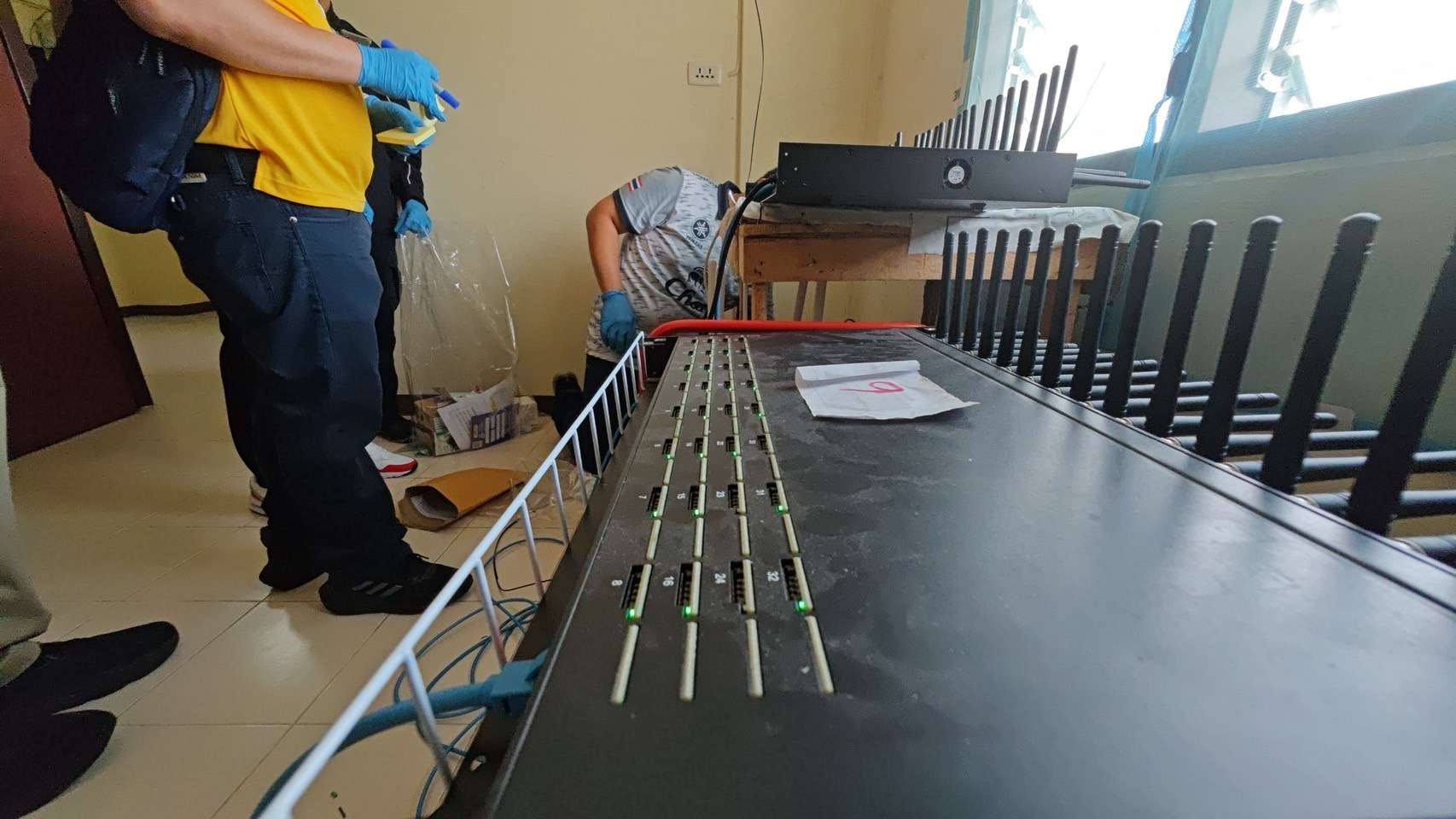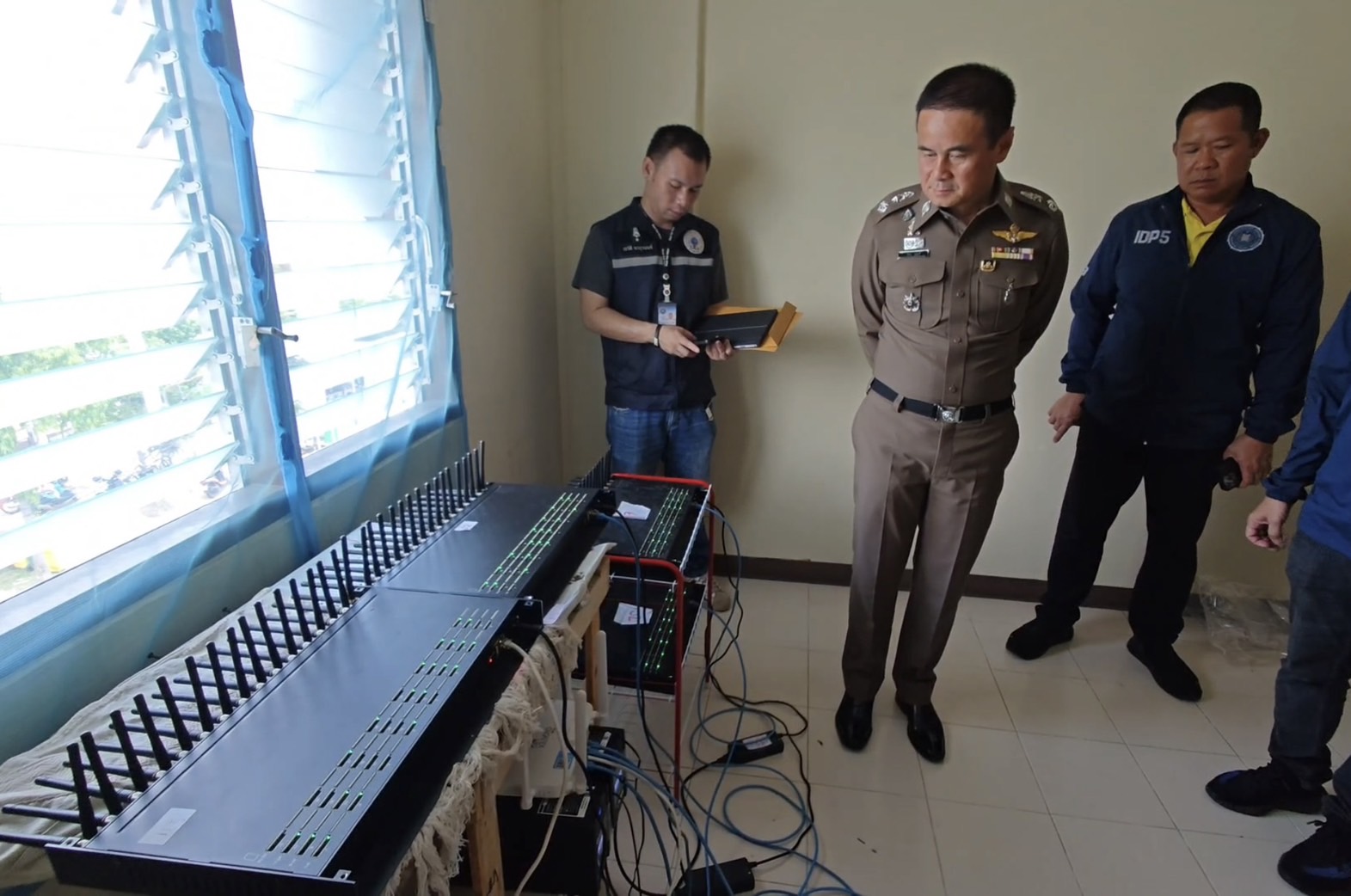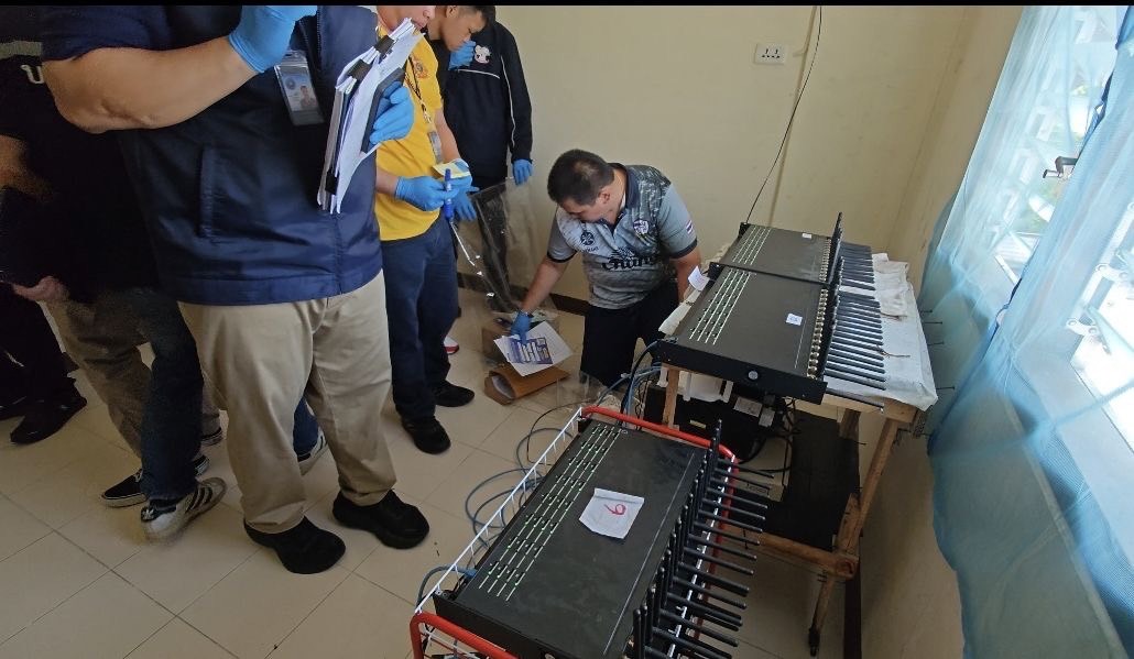 โดยที่ห้องพักบนชั้น 4 อาคาร 1 โครงการบ้านเอื้ออาทรแห่งหนึ่งบริเวณ ต.หนองควาย อ.หางดง จ.เชียงใหม่ เจ้าหน้าที่พบเครื่อง GSM Gateways หรือ ซิมบ็อก ซึ่งเป็นอุปกรณ์สำหรับแปลงสัญญาณการโทรศัพท์ผ่านระบบอินเทอร์เน็ตให้เป็นเบอร์โทรศัพท์ภายในประเทศ จำนวน 4 เครื่อง พร้อมอุปกรณ์จ่ายไฟ ซึ่งทั้งหมดยังเปิดใช้งานอยู่ ส่วนที่บ้านเอื้ออาทรอีก 2 จุดพบเครื่องซิมบ็อกอีกห้องละ 4 เครื่อง รวมทั้งหมด 12 เครื่อง โดยเจ้าหน้าที่ได้จับกุมผู้ต้องหาคู่รักชายอายุ 21 และ หญิง อายุ 25 ปี ที่เป็นคนเช่าห้องทั้ง 3 ห้อง