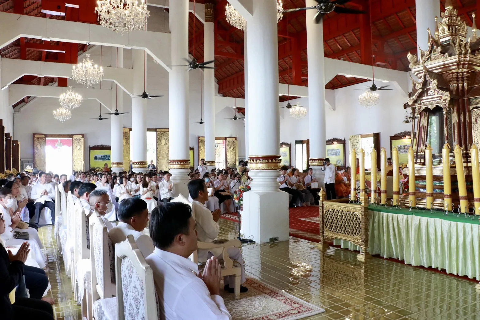 เมื่อวันที่ 15 ก.ค.2567 ที่วิหารหลวงวัดพระสิงห์วรมหาวิหาร อำเภอเมืองเชียงใหม่ จังหวัดเชียงใหม่ นายนิรัตน์ พงษ์สิทธิถาวร ผู้ว่าราชการจังหวัดเชียงใหม่ มอบหมายให้ นายศิวะ ธมิกานนท์ ปลัดจังหวัดเชียงใหม่ ปฏิบัติราชการแทนผู้ว่าราชการจังหวัดเชียงใหม่ เปิดงานวันสำคัญทางพระพุทธศาสนา เนื่องในเทศกาลวันอาสาฬหบูชาและวันเข้าพรรษา ประจำปี 2567 โดยจังหวัดเชียงใหม่ร่วมกับคณะสงฆ์จังหวัดเชียงใหม่ หน่วยงานภาครัฐ ภาคเอกชน และองค์กรทางพระพุทธศาสนา ตลอดจนพุทธศาสนิกชนชาวเชียงใหม่ทุกหมู่เหล่า ได้ร่วมกันจัดขึ้นเพื่อส่งเสริมและจัดกิจกรรมรำลึกถึงพระรัตนตรัย และเผยแพร่พระพุทธศาสนา เนื่องในเทศกาลวันอาสาฬหบูชาและวันเข้าพรรษา เป็นการส่งเสริมให้พุทธศาสนิกชน เยาวชน นักเรียนนักศึกษา ได้ศึกษาหลักธรรมะ และร่วมปฎิบัติกิจกรรมทางพระพุทธศาสนา ถวายเป็นพระราชกุศลและถวายพระพรชัยมงคล เนื่องในโอกาสมหามงคลเฉลิมพระชนมพรรษาที่พระบาทสมเด็จพระเจ้าอยู่หัวทรงเจริญพระชนมพรรษาครบ 6 รอบ 28 กรกฎาคม 2567