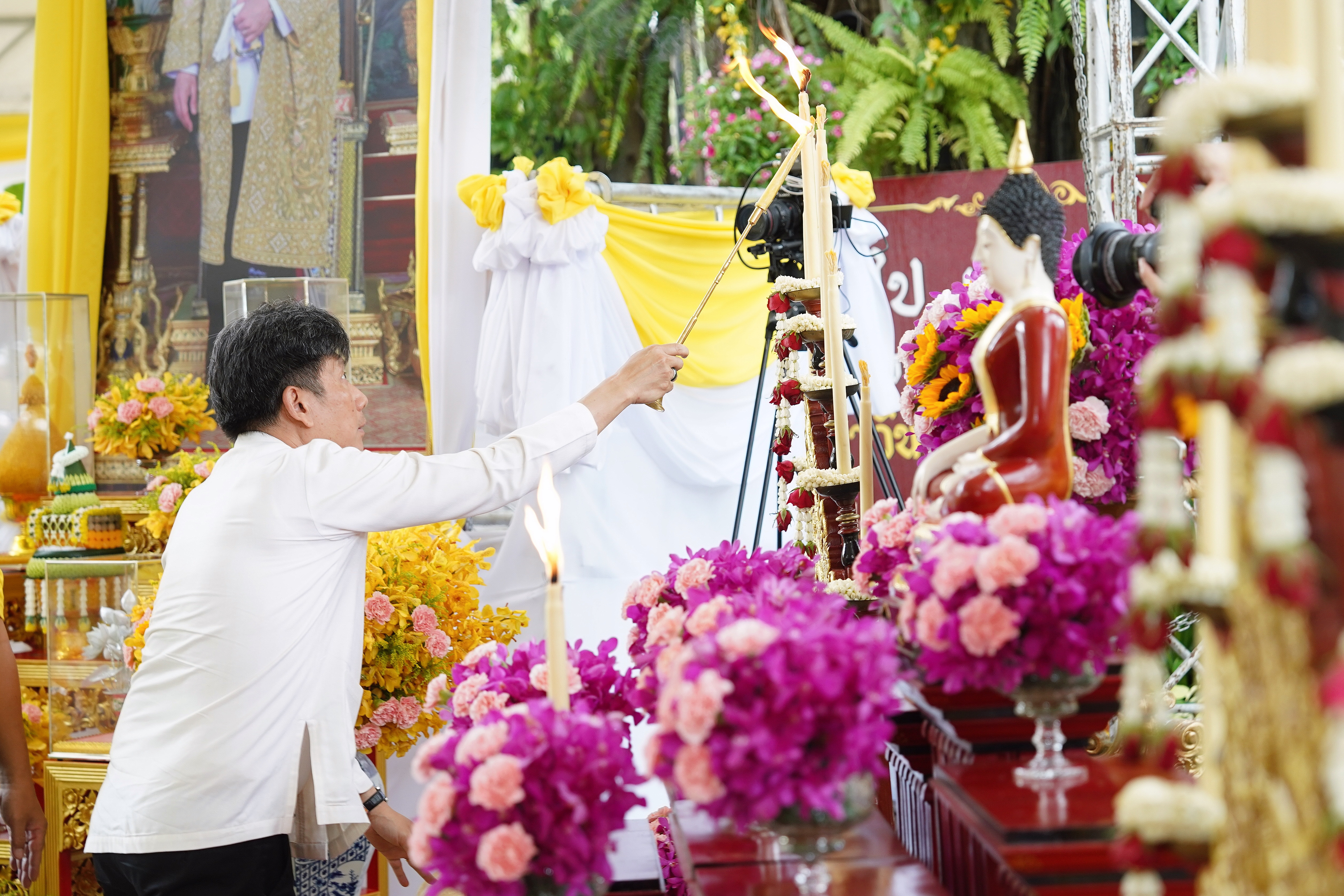 ศ.(เชี่ยวชาญพิเศษ) นพ.บรรณกิจ โลจนาภิวัฒน์ คณบดีคณะแพทยศาสตร์ มช. พร้อมด้วย รศ.นพ.ณัฐพงศ์ โฆษชุณหนันท์ รองคณบดีคณะแพทยศาสตร์ มช., คุณพัชรา อุบลศรี ที่ปรึกษาประธานมูลนิธิโรงพยาบาลสวนดอก, คุณอรวรรณ เร่งเร็ว หัวหน้างานบริหารทั่วไป, คุณวราภรณ์ ชื่นจงกลกุล ผู้จัดการมูลนิธิโรงพยาบาลสวนดอก และคุณบุญเฉลา สุริยวรรณ ร่วมมหาพิธีทำบุญถวายทานเทียนพรรษา ประจำปีพุทธศักราช 2567 และน้อมถวายมหาสังฆทาน บาตร ผ้าไตร ผ้าจีวร ผ้าอาบน้ำฝน ร่ม รองเท้า ข้าวสาร แด่พระสงฆ์ จำนวน 121 วัด 121 รูป โดยมี พระเดชพระคุณ พระธรรมเสนาบดี รองเจ้าคณะภาค 7 เจ้าอาวาสวัดพระธาตุดอยสุเทพ ราชวรวิหาร เป็นประธานฝ่ายสงฆ์ และนายนิรัตน์ พงษ์สิทธิถาวร ผู้ว่าราชการจังหวัดเชียงใหม่ เป็นประธานฝ่ายฆราวาส ข้าราชการ และศรัทธาประชาชน เข้าร่วมในพิธี ในวันที่ 19 กรกฎาคม 2567 ณ วัดคันธาราม (วัดทุ่งอ้อ) อ.สันป่าตอง จ.เชียงใหม่