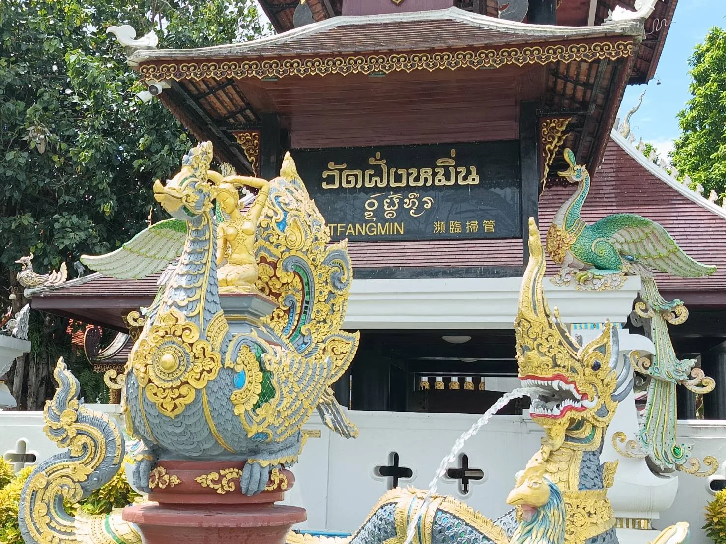 พระครูขันติพลาธร (บุญยวง ขนฺติพโล) รองเจ้าคณะ จ.เชียงราย และเจ้าอาวาสวัดฝั่งหมิ่น เปิดเผยว่า วัดฝั่งหมิ่นแห่งนี้เป็นวัดเก่าแก่ของ จ.เชียงราย อายุไม่ต่ำกว่า 250 ปี เคยเป็นวัดที่จมอยู่ใต้น้ำกก แต่เมื่อแม่น้ำกกเปลี่ยนทิศทางการไหล ก็ปรากฏวัดแห่งนี้ขึ้นมา ซึ่งจากลักษณะที่เป็นวัดตั้งอยู่ริมแม่น้ำกก ชาวบ้านในพื้นที่ก็เลยเรียกชื่อว่า “วัดฝั่งหมิ่น” พบหลักฐานการเริ่มต้นบูรณะวัดโดย พระครูบาก่ำ ครูบาก๋า และครูบาอภัย ปัจจุบันมีการจัดสร้างศาลบูชาครูบาทั้ง 3 ที่มีส่วนร่วมในการบูรณะวัด เพื่อให้ชาวบ้านได้กราบไหว้บูชา และที่วัดฝั่งหมิ่นยังมีพระพุทธรูปสำคัญคือ “พระปาฏิหารย์มงคล” เป็นพระโบราณ สมัยศตวรรษที่ 21 อายุประมาณ 700-800 ปี ซึ่งมีประวัติไม่ธรรมดา เพราะพระพุทธรูปองค์ดังกล่าวเคยหายออกไปจากวัดฝั่งหมิ่นถึง 2 ครั้ง แต่ทุกครั้งที่หายไปก็จะได้คืนมาตลอด ในครั้งแรกที่หายก็หายไปประมาณ 70-80 ปี แต่วันดีคืนดีก็มีชาวบ้านไปทอดแห ก็ไปเจอพระองค์ดังกล่าวจมอยู่ใต้น้ำ ก็เลยเอากลับมาให้ชาวบ้านได้กราบไหว้บูชาที่วัดก็เลยเอากลับมาให้ชาวบ้านได้กราบไหว้บูชาที่วัดได้อีกประมาณ 20 ปี ก็หายไปอีกรอบ และรอบนี้หายไปนานมาก จนกระทั่งมีชาวบ้านไปขุดเจอพระองค์ดังกล่าวฝังอยู่ที่หลังวัด หลังจากที่ขุดเจอในครั้งนั้น ทางวัดก็นำกลับมาเก็บรักษาไว้อย่างดี มีกุญแจล็อคป้องกันการขโมย เคยมีผู้มาขอพร บนบานสิ่งต่างๆ ก็พบว่าต่างก็ประสบความสำเร็จ สมหวังตามที่ขอกันแทบทุกคน ในทุกๆปีก็จะนำไปร่วมพิธีแห่ในงานสงกรานต์ของเทศบาลนครเชียงรายตลอด