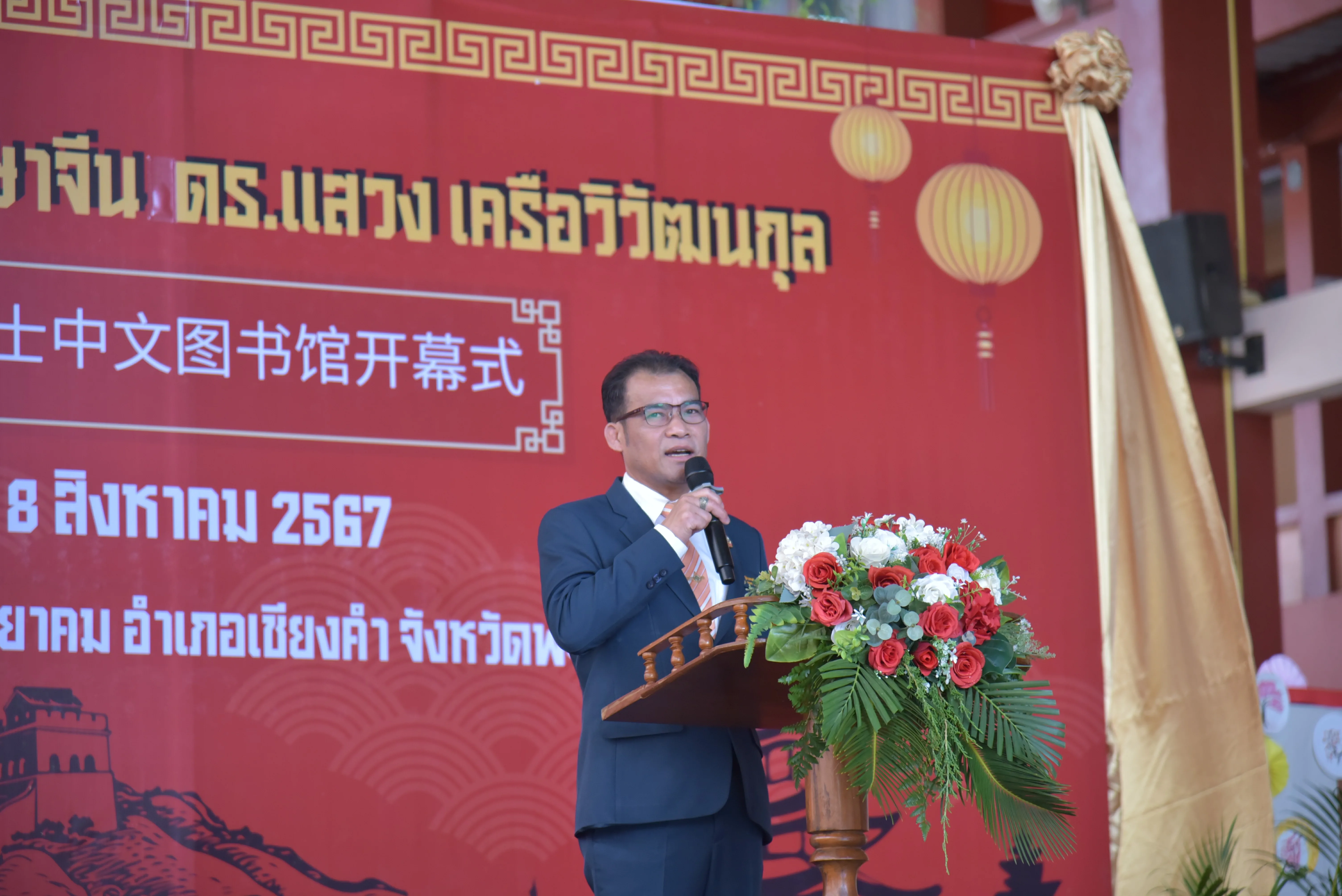 เมื่อวันที่ 8 ส.ค.67 ผู้สื่อข่าวรายงานว่า ภายในโดมจัดกิจกรรมของ รร.เชียงคำวิทยาคม อ.เชียงคำ จ.พะเยา ได้มีการจัดนิทรรศการเปิดห้องสมุดภาษาจีนขึ้นโดยพบว่าเป็นแห่งแรกใน จ.พะเยา ขอ รร.มัธยมที่มีห้องสมุดภาษาจีนเกิดขึ้น ซึ่งทาง ดร.แสวง เครือวิวัฒนกุล เจ้าของโรงแรมวังคำ จ.เชียงราย ได้เดินทางมาเป็นประธานในการเปิดห้องสมุดภาษาจีนในครั้งนี้ซึ่งตัวของเจ้าของโรมแรมวังคำได้สนับสนุนเงินส่วนตัวของการจัดตั้งห้องสมุดในครั้งนี้ด้วย โดยได้มีทางนายนิเวช อินสุวอ ผอ.สำนักงานเขตพื้นที่การศึกษามัธยมศึกษาพะเยาได้เดินทางมาร่วมงานพร้อมทั้งได้มีทางนายคมน์สิทธิ์ กันทาสุวรรณ์ ผอ.รร.เชียงคำวิทยาคม และอดีตผู้อำนวยการโรงเรียน ปลัดอำเภอ สโมสรโรตารี่ อ.เชียงคำรวมคณะผู้บริหารทั้ง 18 โรงเรียนมัธยมมาร่วมงานครั้งนี้กันอย่างมากมาย ซึ่งภายในงานนี้ได้มีการแสดงเชิดสิงโตของเด็ก ๆ จาก รร.ดงเจนวิทยาคม อ.ดอกคำใต้และการแสดงรำมวยจีนของนักเรียน รร.เชียงคำวิทยาคมด้วยเช่นกัน นอกจากนี้เด็กนักเรียนได้มีการจัดบูทนิทรรศการของการประดิษฐ์สิ่งของจากวัสดุธรรมชาติ สาธิตการชงชาแบบจีน รวมทั้งการโชว์ผลงานเรียงความภาษาจีนของน้อง ๆ นักเรียน รร.เชียงคำวิทยาคมในครั้งนี้ด้วยเช่นกัน