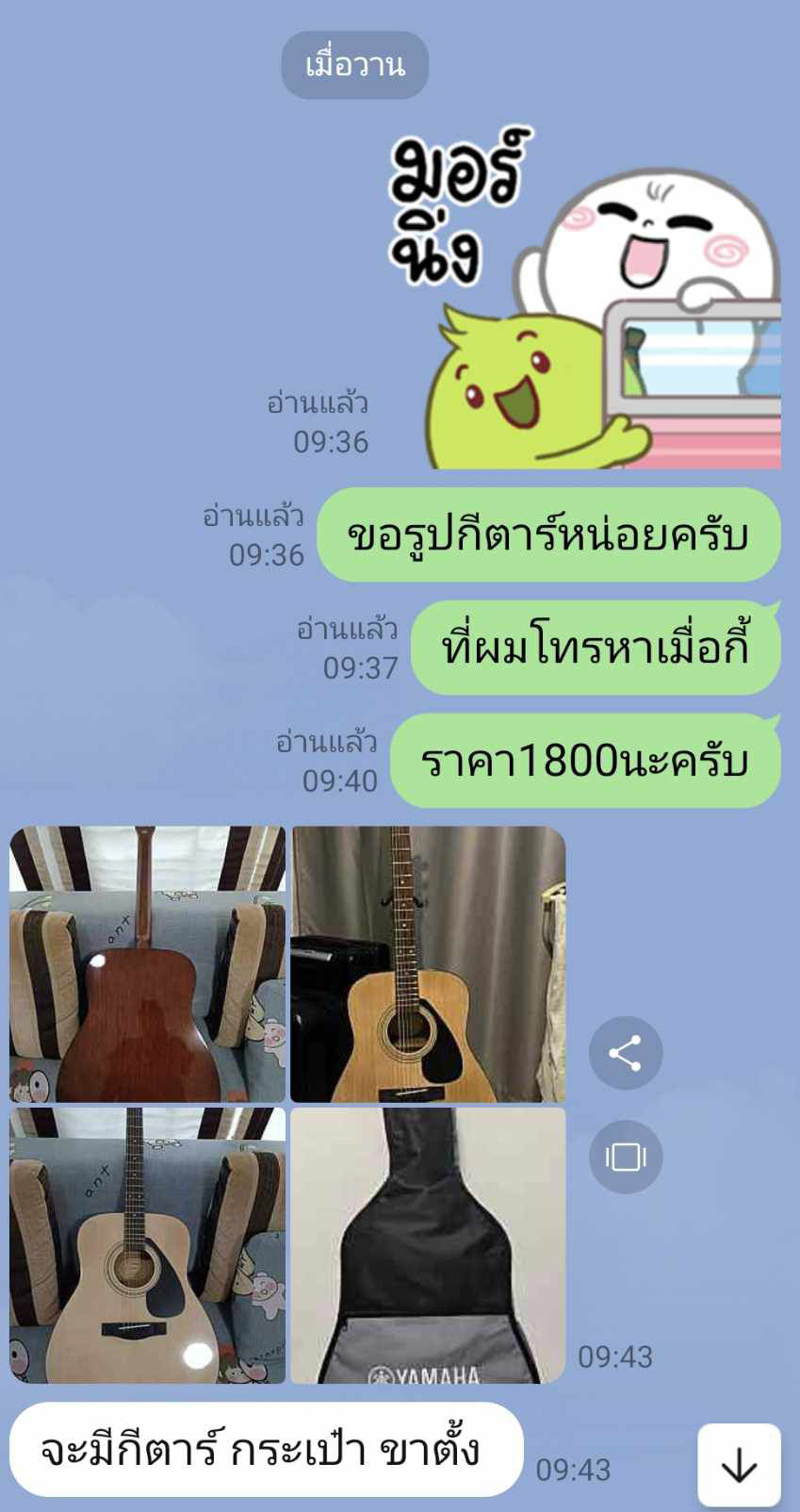 ชึ่งเมื่อวันที่ 13 สิงหาคม 67 เวลาประ 09.30 น.มิจฉาชีพจึงให้แอดไลน์มาคุยกัน หลังจากนั้นก็พูดคุยต่อราคากัน ซึ่งตอนนั้นตนก็ไม่ได้เอะใจเพราะว่าบ้านอยู่ใกล้กันกับหมู่บ้านที่ลงไว้ และวันที่ 14 สิงหาคม ,ตอนเช้าจะเดินทางไปเอาของหากพบของที่ถูกใจก็อาจจะซื้อกลับอย่างอื่นด้วย ซึ่งคุณแมวได้ตกลงซื้อกีต้าร์ จำนวน 1 ตัวในราคา 1,800 บาท ตามรูป และได้โอนเงินไปยังบัญชีของ “น.ส.วราพร ที่ทางนายกิติพงษ์ได้ให้คิวอาร์โค้ดพร้อมเพล์ในเเชทกับทางคุณแมว พอได้เงินแล้วตกเช้ามาคุณแมวก็มาเห็นทางไลน์ที่คุยกันโดนบล็อคแล้ว ตนจึงได้รีบโทรศัพท์กลับไปยังเบอร์ที่โทรคุยกันเมื่อวาน ก็ไม่สามารถติดต่อได้แล้วทางคุณเเมวฝากถึงพี่ๆน้องๆท่านอื่นให้ระมัดระวังในการชื้อสินค้าเเละบริการ อาจจะตกเป็นเหยื่อของมิจฉาชีพได้
