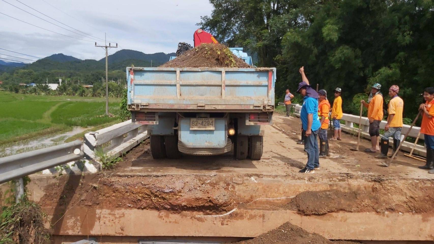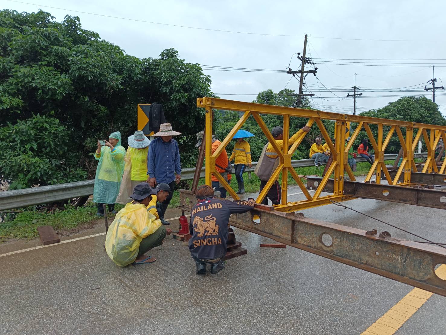 ด้านสะพานข้ามแม่น้ำหงาว พื้นที่บ้านปางค่า ม.8 ต.ตับเต่า ที่โดนน้ำหงาวซัดขาดไปเมื่อวันที่ 21 ส.ค. ที่ผ่านมา ส่งผลให้บ้านเรือน 7 หมู่บ้านโซนล่างภูชี้ฟ้าโดนตัดขาด ต้องใช้โดรนการเกษตรในการส่งอาหารให้ผู้ประสบภัยที่ออกมาไม่ได้ โดยในวันนี้ทางศูนย์สร้างและบูรณะสะพานที่ 1 จ.พิจิตร ได้นำเอาสะพานแบลี่ย์มาติดตั้งเพื่อบรรเทาความเดือดร้อนเป็นการเร่งด่วน