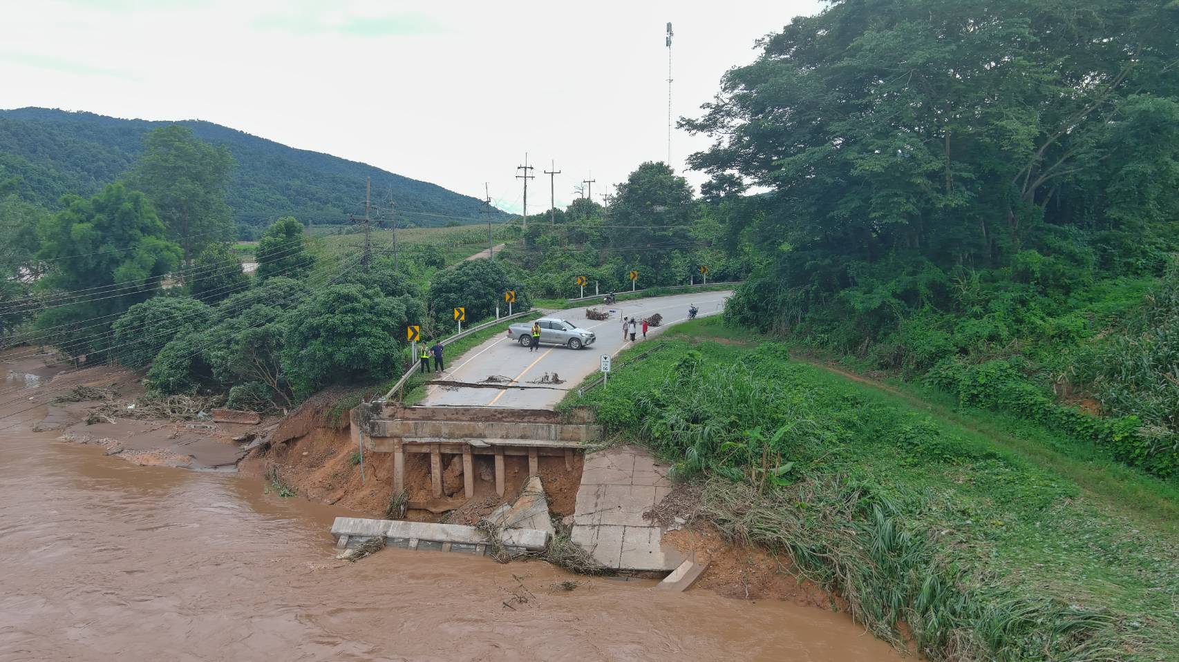 วันที่ 23 ส.ค. 67 จากกรณีที่มีฝนตกลงมาอย่างต่อเนื่องในหลายพื้นที่ของ จ.เชียงราย ทำให้เกิดปัญหาน้ำป่าไหลหลาก น้ำท่วม ดินสไลด์ ถนนขาด ในหลายจุดของ อ.เทิง และ อ.เวียงแก่น กรมทางหลวงเร่งดำเนินการซ่อมแซมถนนเชื่อมทางสัญจร ขณะที่สถานการณ์น้ำท่วมในอำเภอเทิงยังคงทรงตัว หลายหน่วยงานเร่งให้การช่วยเหลือ
