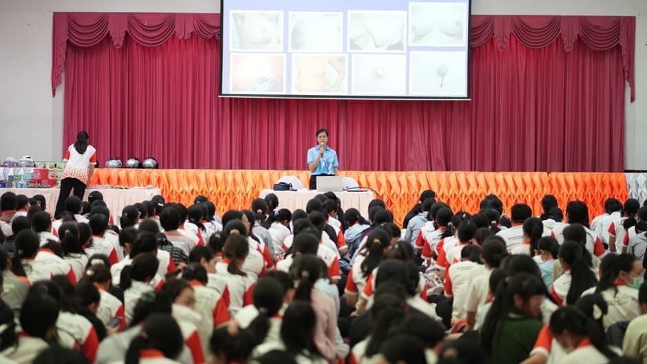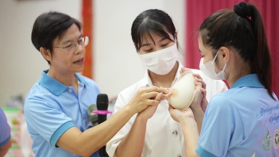 วันที่ 22 สิงหาคม 2567 กลุ่มพัฒนาการส่งเสริมสุขภาพวัยทำงาน ศูนย์อนามัยที่ 1 เชียงใหม่ จัดอบรมเชิงปฏิบัติการพัฒนาศักยภาพแกนนำนักศึกษาวิทยาลัยพยาบาลบรมราชชนนี เชียงใหม่ เพื่อสร้างความรอบรู้การดูแลตนเองให้ห่างไกลมะเร็งเต้านม ภายใต้โครงการสืบสานพระราชปณิธานสมเด็จย่าต้านภัยมะเร็งเต้านม โดย กิจกรรมในการอบรมเชิงปฏิบัติการฯ ประกอบด้วย การให้ความรู้เรื่องมะเร็งเต้านม และการฝึกทักษะการตรวจเต้านมด้วย “3นิ้ว 3สัมผัส สกัดมะเร็งเต้านม” มีแกนนำนักศึกษาวิทยาลัยพยาบาลบรมราชชนนี เชียงใหม่ เข้าร่วมอบรมเชิงปฏิบัติการฯ ดังกล่าว จำนวน 500 คน “มะเร็งเต้านม รู้เร็ว รักษาได้”