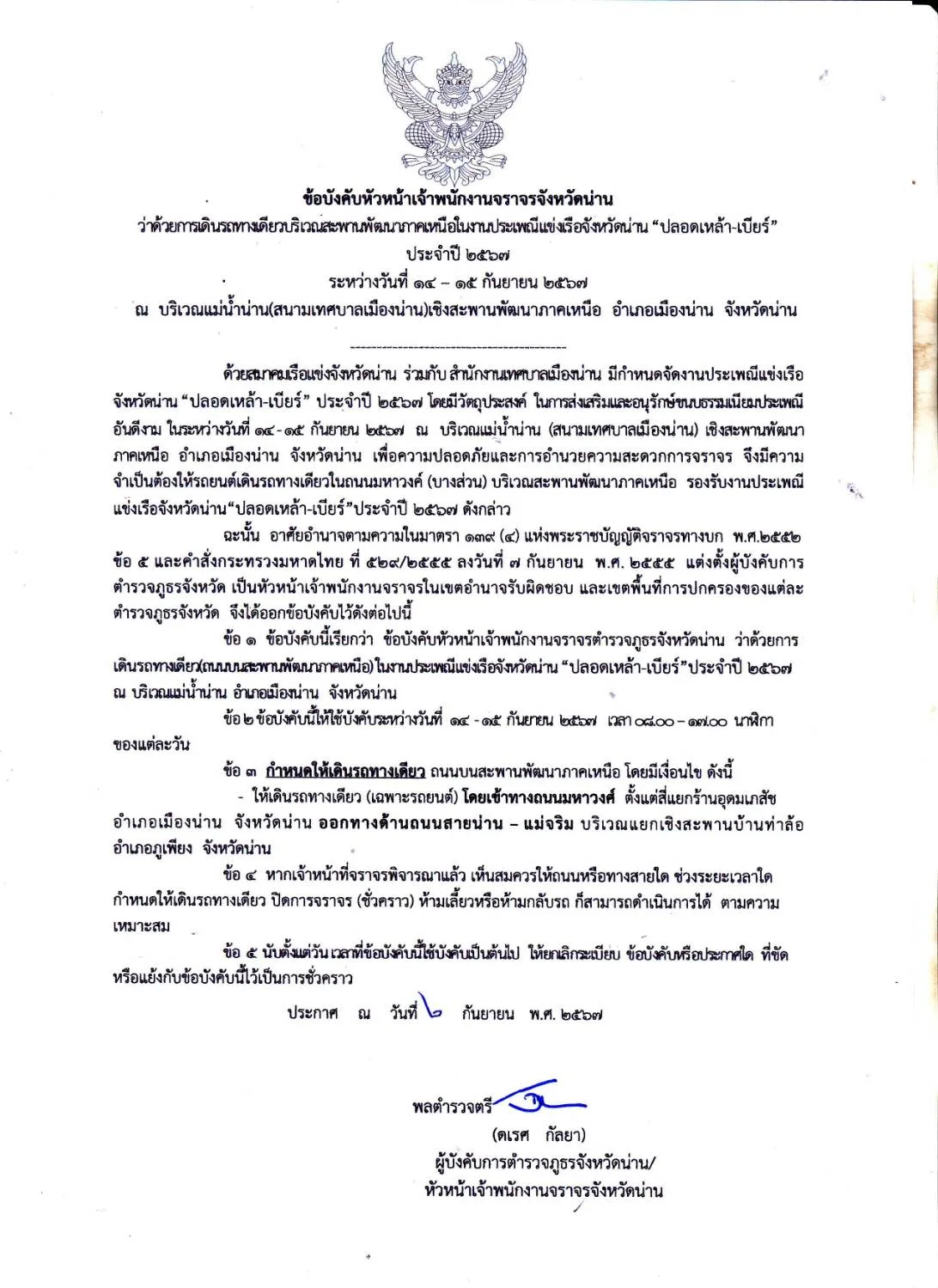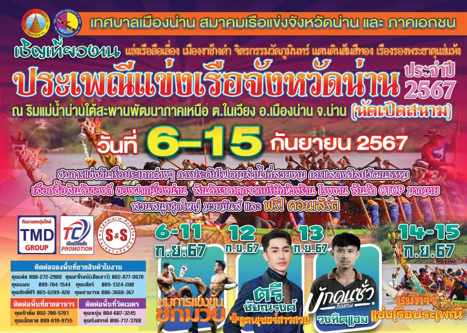 เทศบาลเมืองน่าน ร่วมกันสมาคมเรือแข่งจังหวัดน่าน จัดงานประเพณีแข่งเรือจังหวัดน่าน (ทานสลากภัตวัดพระธาตุช้างค้ำ วรวิหาร) “ปลอดเหล้า-เบียร์” ประจำปี 2567 นัดเปิดสนาม