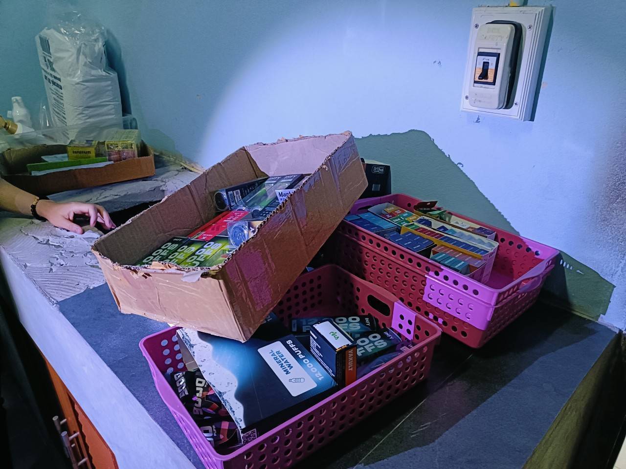 จากการตรวจค้น พบบุหรี่ไฟฟ้า ชนิดใช้แล้วทิ้ง จำนวน 42 ชิ้น และหัวพอร์ต (น้ำยาสำหรับใช้กับตัวเครื่อง) จำนวน 60 ชิ้น รวมของกลางทั้งสิ้น 102 ชิ้น วางอยู่ภายในช่องลับในห้องน้ำ ซึ่งได้ทำไว้สำหรับซุกซ่อนบุหรี่ไฟฟ้าโดยเฉพาะ