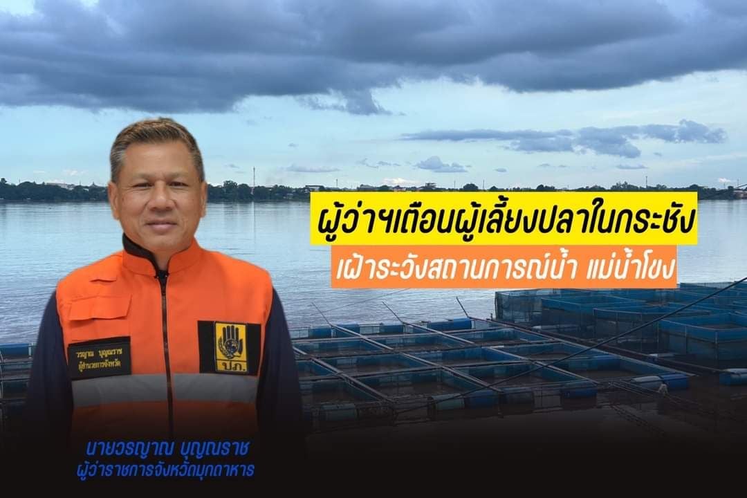 ผู้ว่าราชการจังหวัดมุกดาหาร ประกาศเตือนภัยเกษตรกรผู้เลี้ยงปลาในกระชังในแม่น้ำโขงเฝ้าระวังสถานการณ์น้ำ