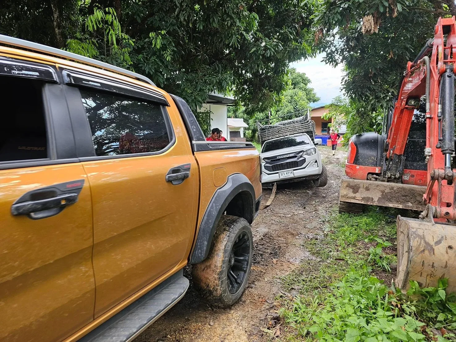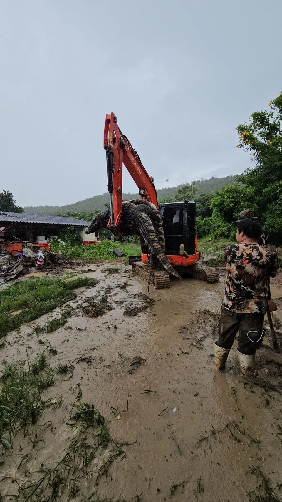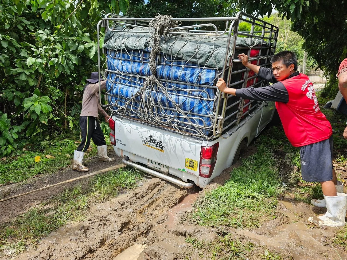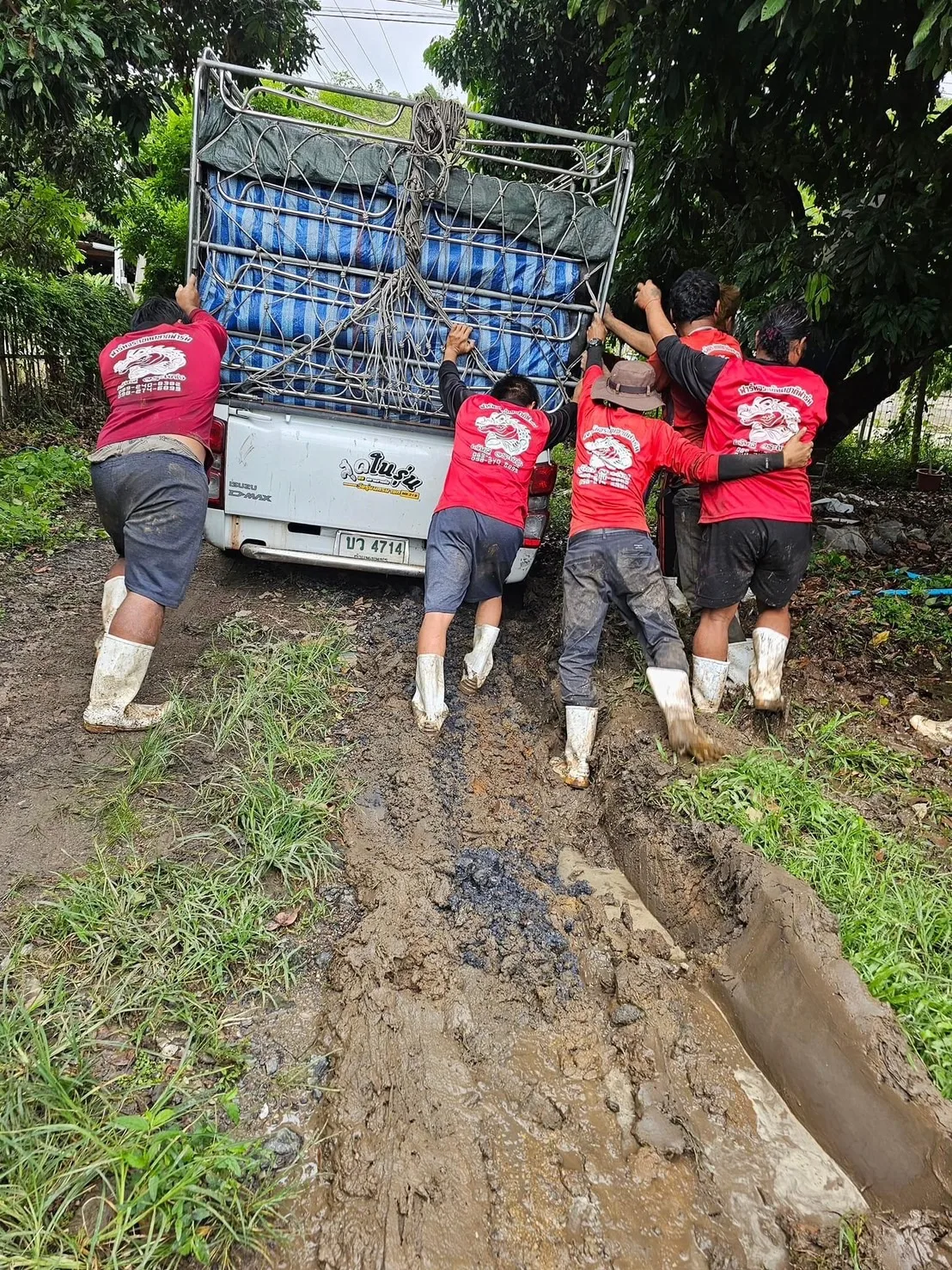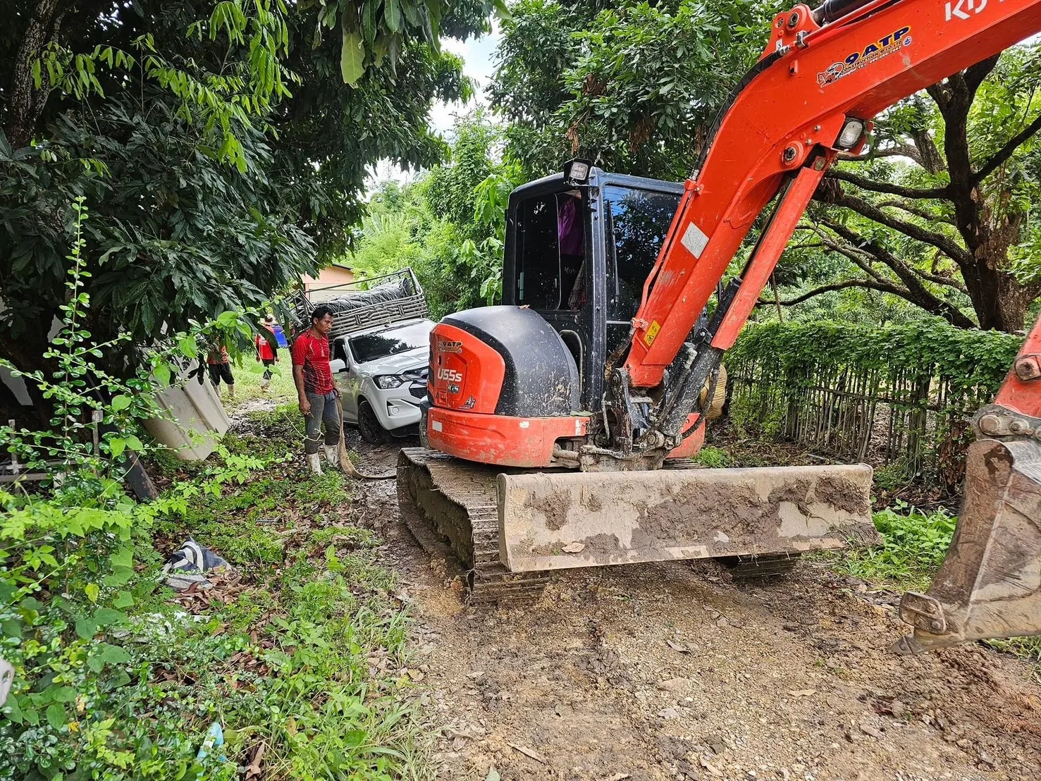 ฝนตกหนัก ดินชุ่มน้ำ อุ้มน้ำจนพื้นน่วม อ่อนปวกเปียก ทำให้การทำงานค่อนข้างจะยากมาก