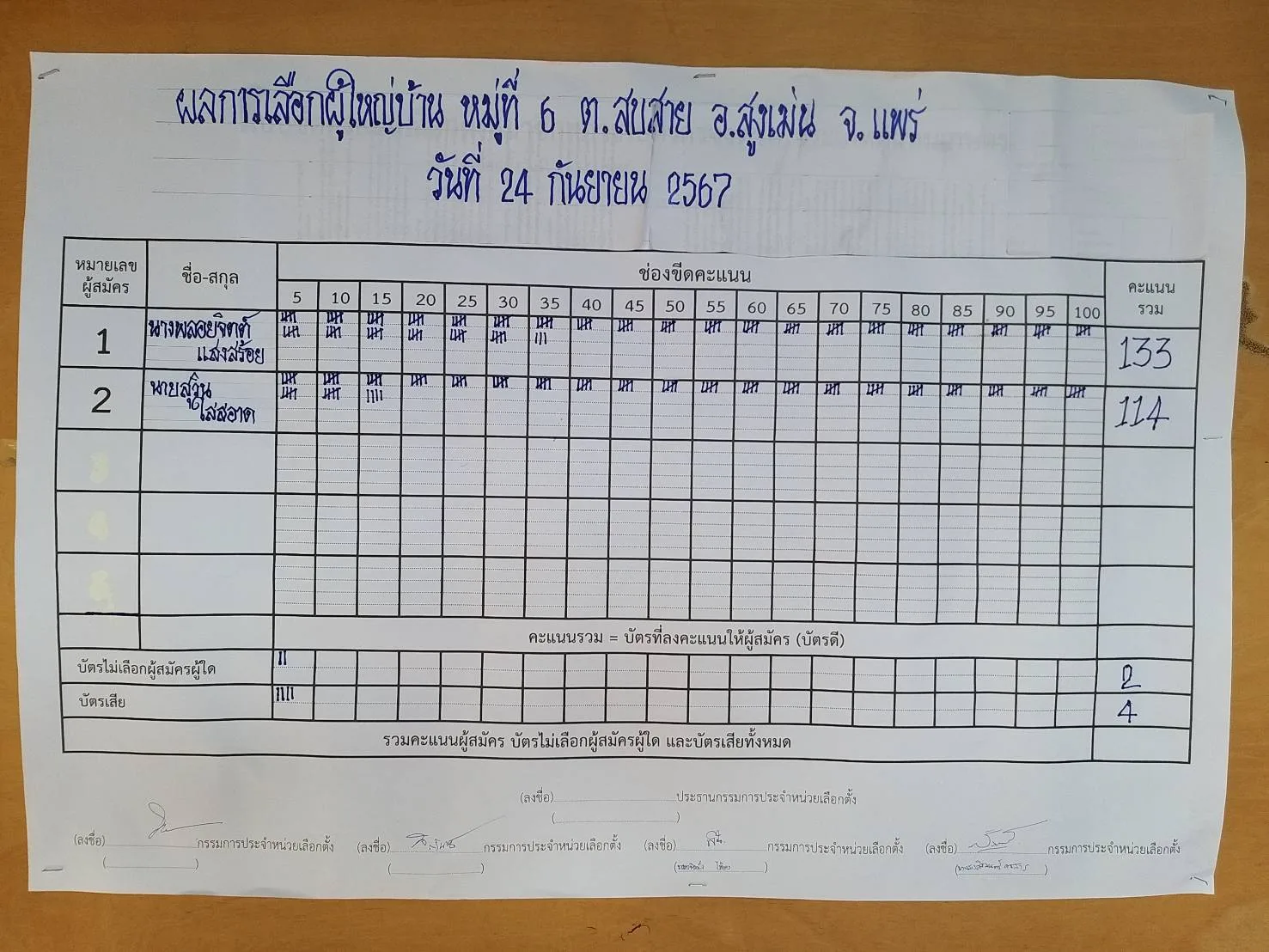 เลือกผู้ใหญ่บ้านสบสาย หมู่ 6 เข้มข้นคึกคัก ชิงกัน 2 คน เบอร์ 1 พลอยจิตต์ชนะเฉือนไป19คะแนน