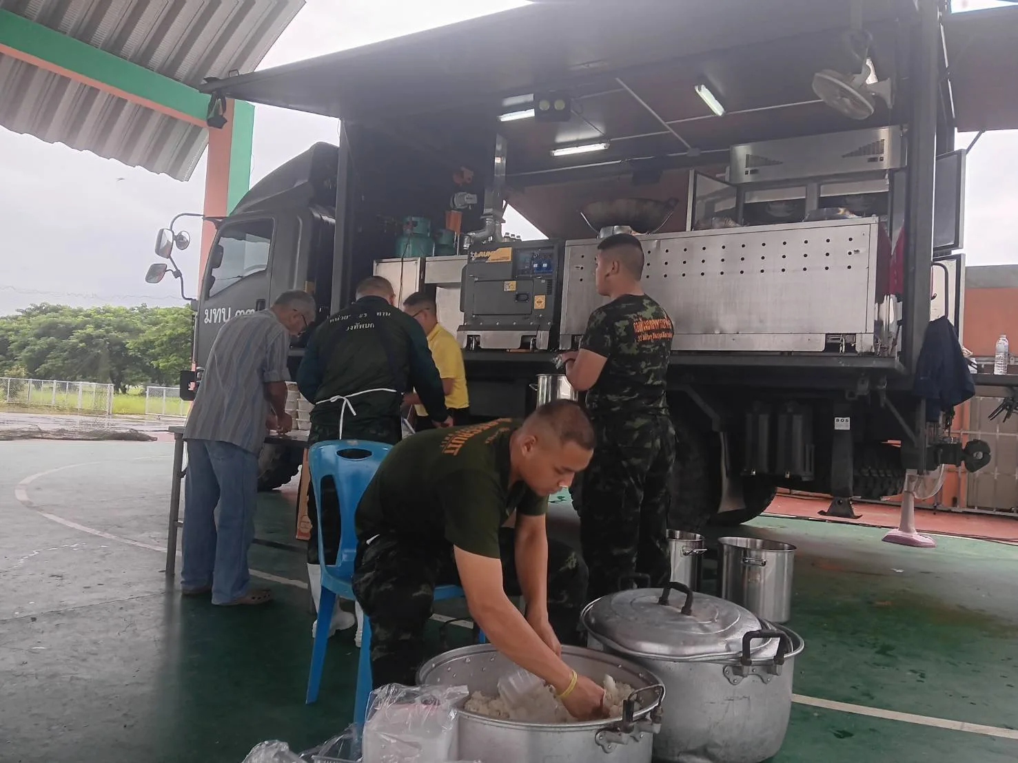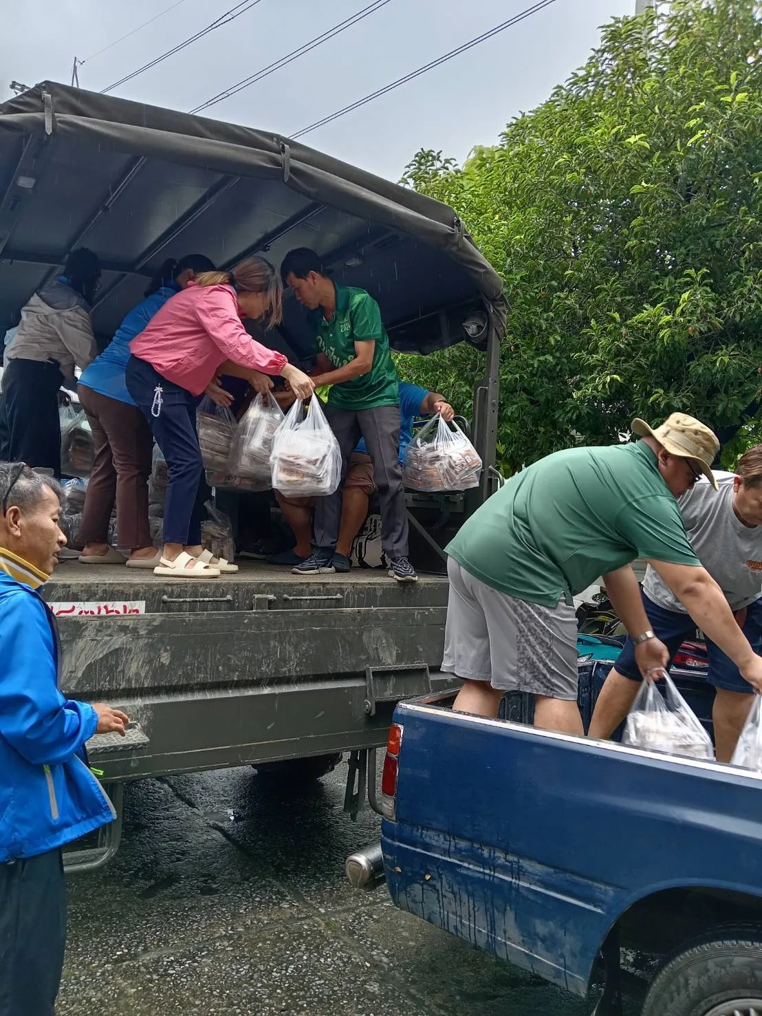 – จัดยานพาหนะพร้อมพลขับและกำลังพล ร่วมกับหน่วยส่วนราชการในพื้นที่ และผู้นำชุมชนในการแจกจ่ายอาหารและน้ำดื่มให้กับประชาชนในพื้นที่ประสบภัยฯ