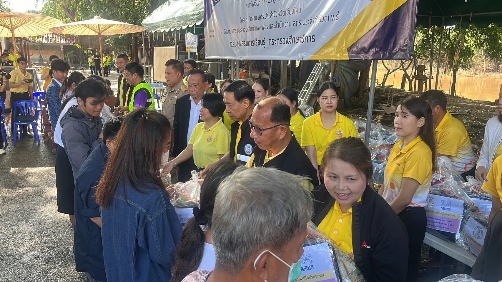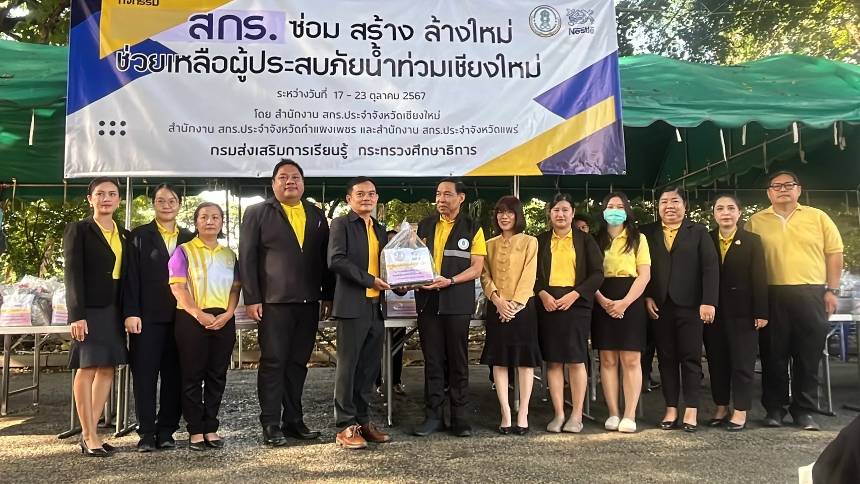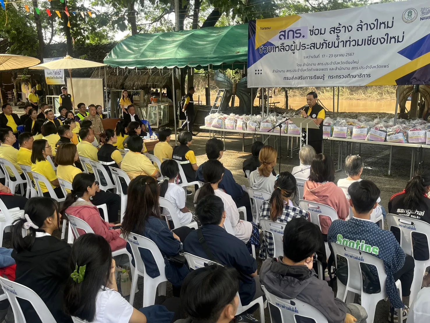 เมื่อวันที่ 21 ต.ค.2567 นายธนากร ดอนเหนือ อธิบดีกรมส่งเสริมการเรียนรู้ พร้อมนายพงษ์ศักดิ์ บุญเป็ง ผู้อำนวยการสำนักงานส่งเสริมการเรียนรู้ประจำจังหวัดเชียงใหม่ พร้อม ผู้อำนวยการ สกร.ทุกจังหวัดในภาคเหนือตอนบนและตอนล่าง พร้อมกับนายลักษ์ บุญชละ นายกเทศมนตรีตำบลสันผีเสื้อ และนายภาวิต บุญชละ รองนายกฯ ร่วมกันเปิดกิจกรรม “สกร. ซ่อม สร้าง ล้างใหม่ ช่วยเหลือผู้ประสบภัยน้ำท่วม” พร้อมมอบถุงยังชีพให้บุคลากรในสังกัด สกร.ในพื้นที่ จ.เชียงใหม่ จำนวน 400 ชุด