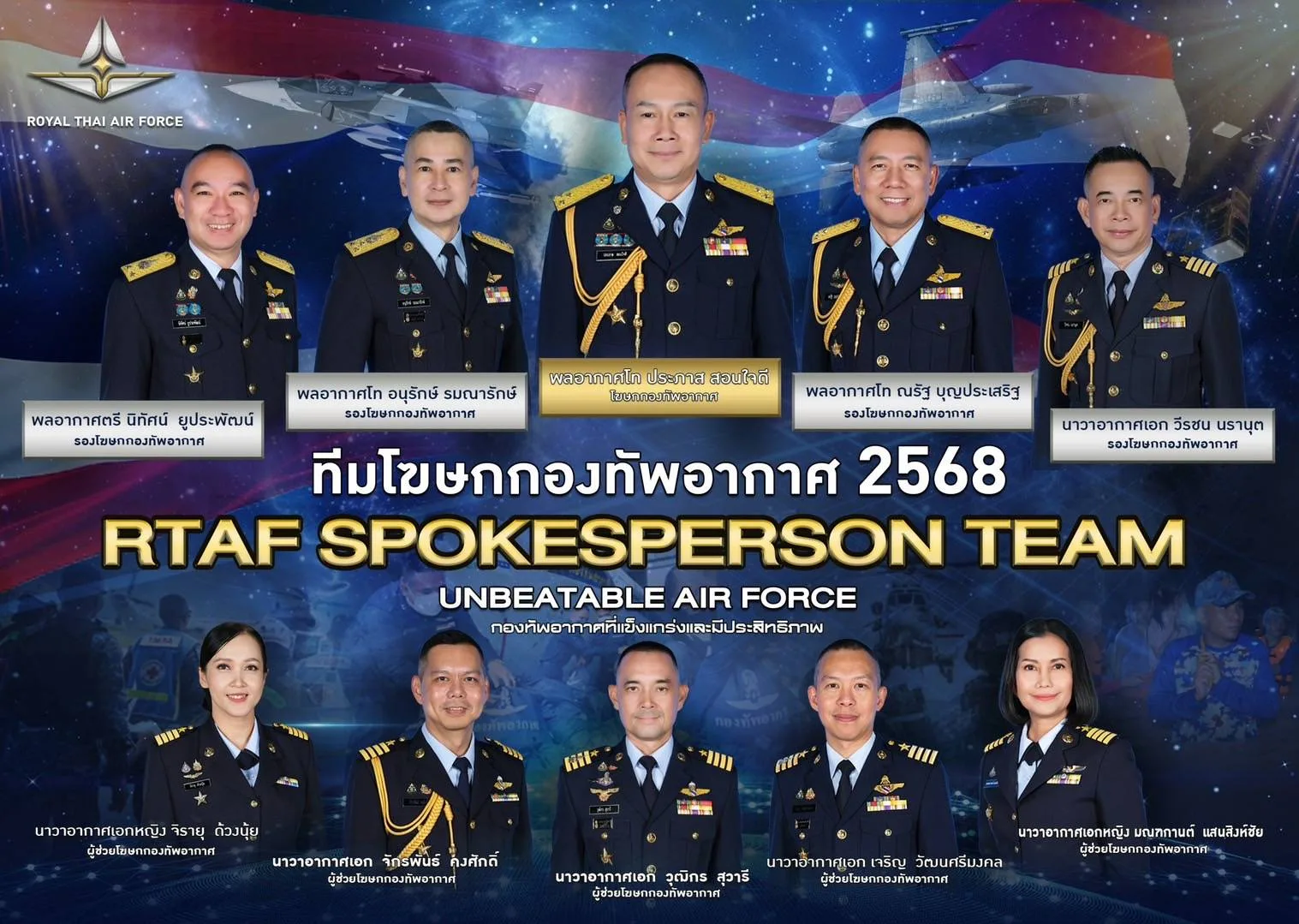 พลอากาศเอก พันธ์ภักดี พัฒนกุล ผู้บัญชาการทหารอากาศ ได้ลงนามในคำสั่งแต่งตั้งทีมโฆษกกองทัพอากาศ ปี 2568 โดยบูรณาการนำทีมที่ทำงานในหน้าที่ประชาสัมพันธ์โดยตรง และทีม Influencer ของกองทัพอากาศ ร่วมทีมโฆษกเพื่อทำหน้าที่สื่อสารนโยบายผู้บัญชาการทหารอากาศสู่กำลังพล สร้างความเข้มแข็งจากภายในสู่ความมั่นใจของคนภายนอก สร้างการรับรู้ที่ถูกต้องต่อประชาชนนำไปสู่ทัศนคติที่ดีต่อกองทัพอากาศ เสริมสร้างความเชื่อมั่นและศรัทธา ก่อให้เกิดภาพลักษณ์ที่ดีต่อกองทัพอากาศ และสนับสนุนการขับเคลื่อนนโยบายเพื่อมุ่งไปสู่กองทัพอากาศที่แข็งแกร่งและมีประสิทธิภาพ โดยปฏิบัติหน้าที่ตั้งแต่ 1 ตุลาคม 2567 เป็นต้นไป