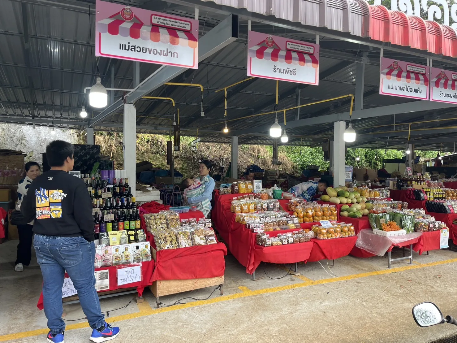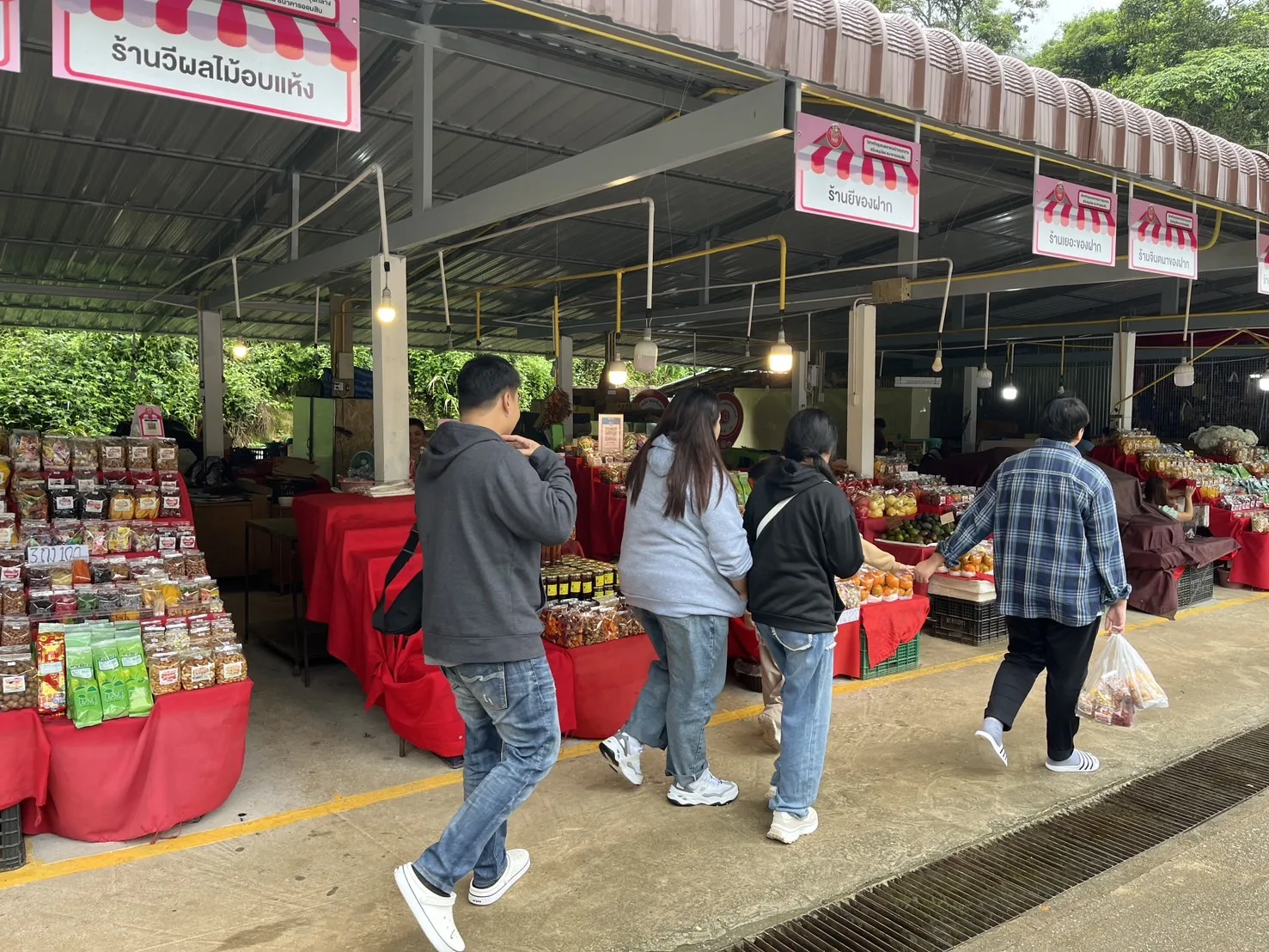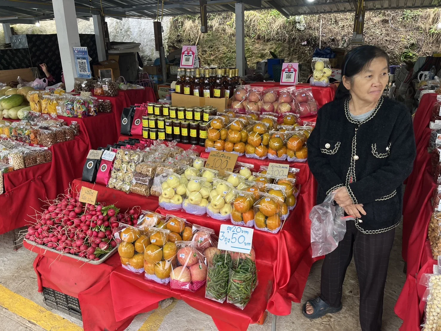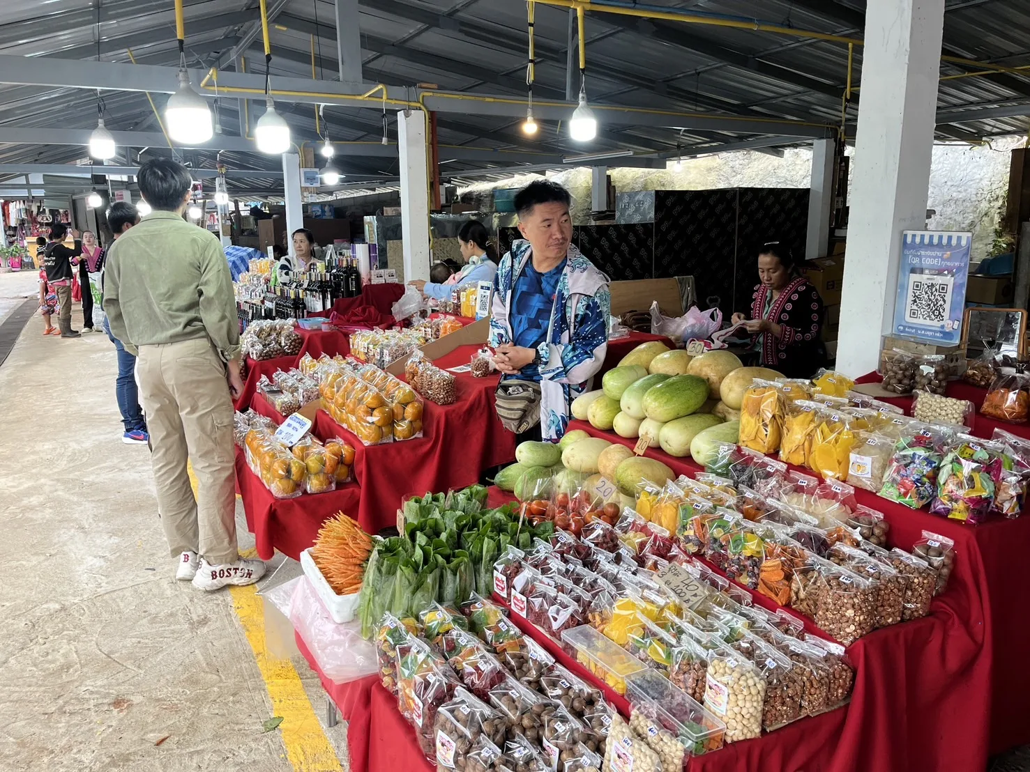 และได้แวะซื้อสินค้าของฝาก อาหาร ผลไม้หลากหลายชนิดกันที่ตลาดม้งดอยอินทนนท์ ในราคาไม่แพง เช่น พริกสด ถุงละ 20 บาท 3 ถุง 50 บาท เป็นต้น