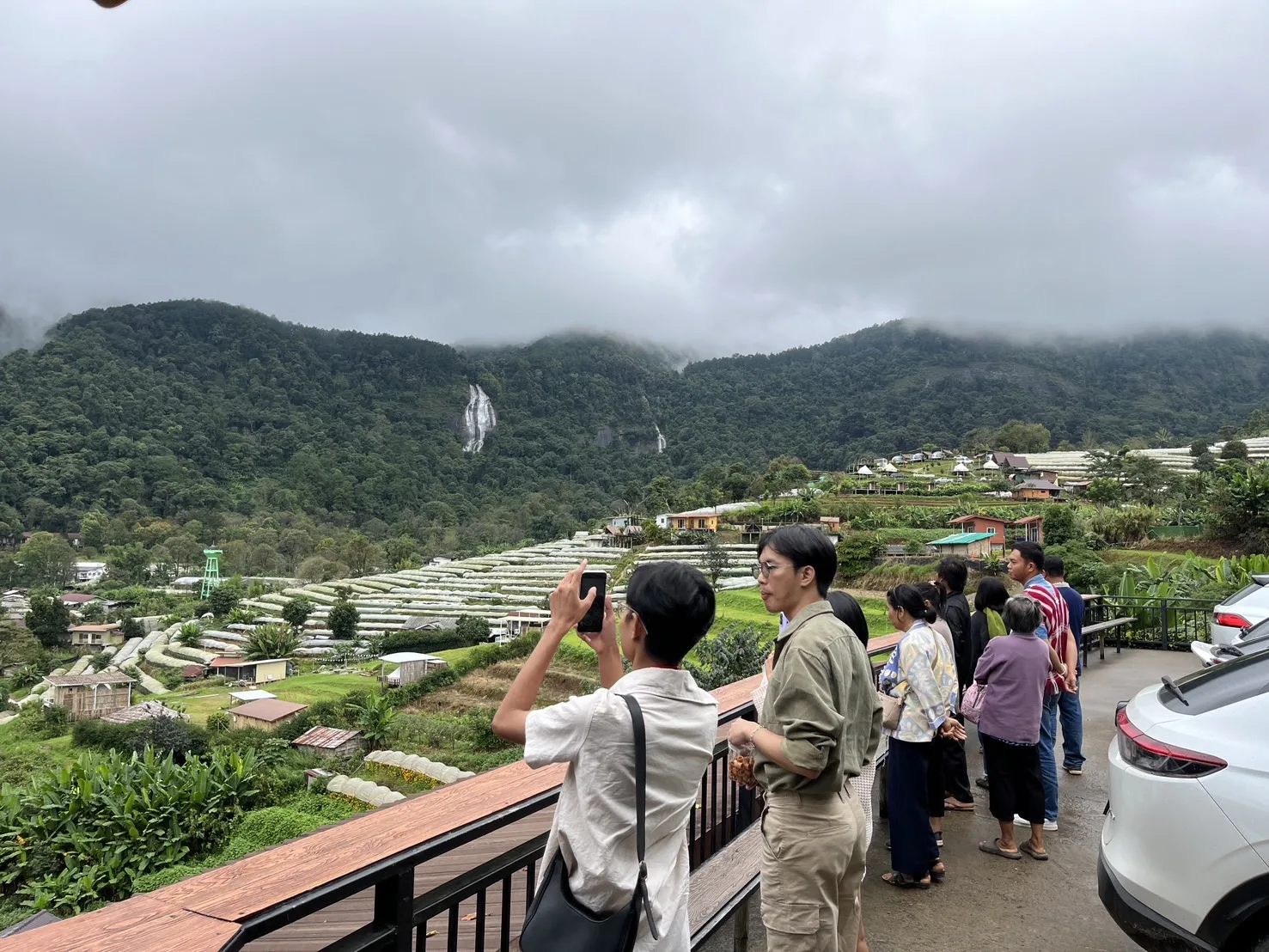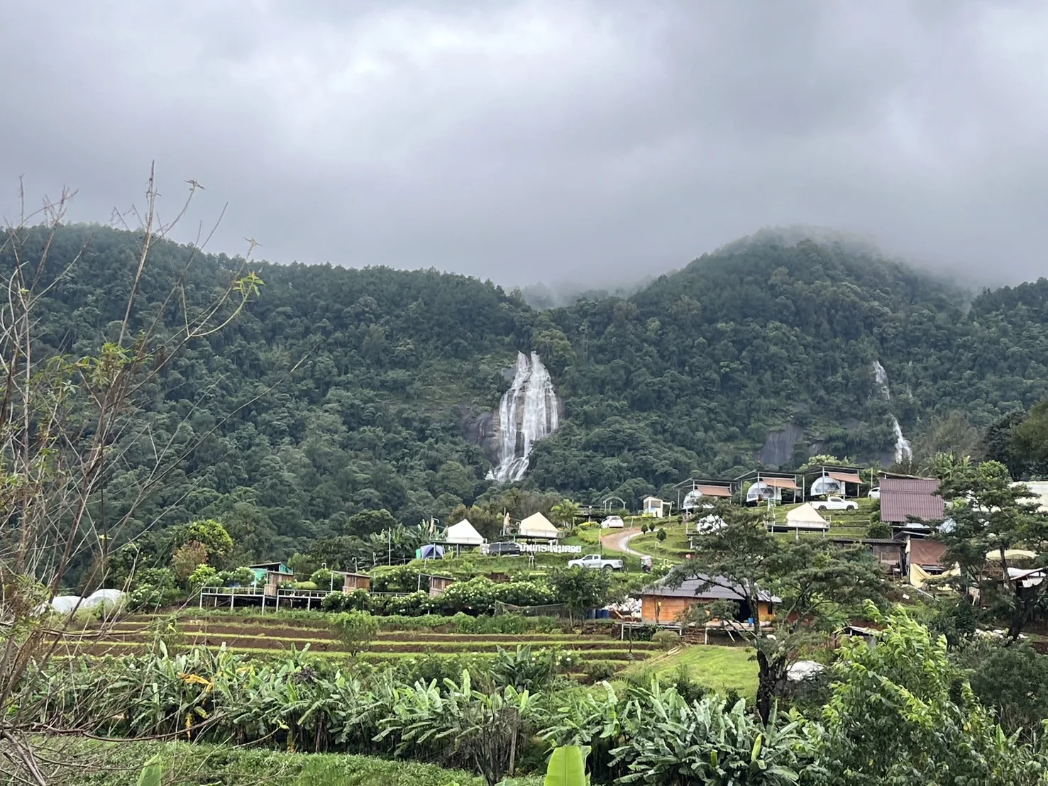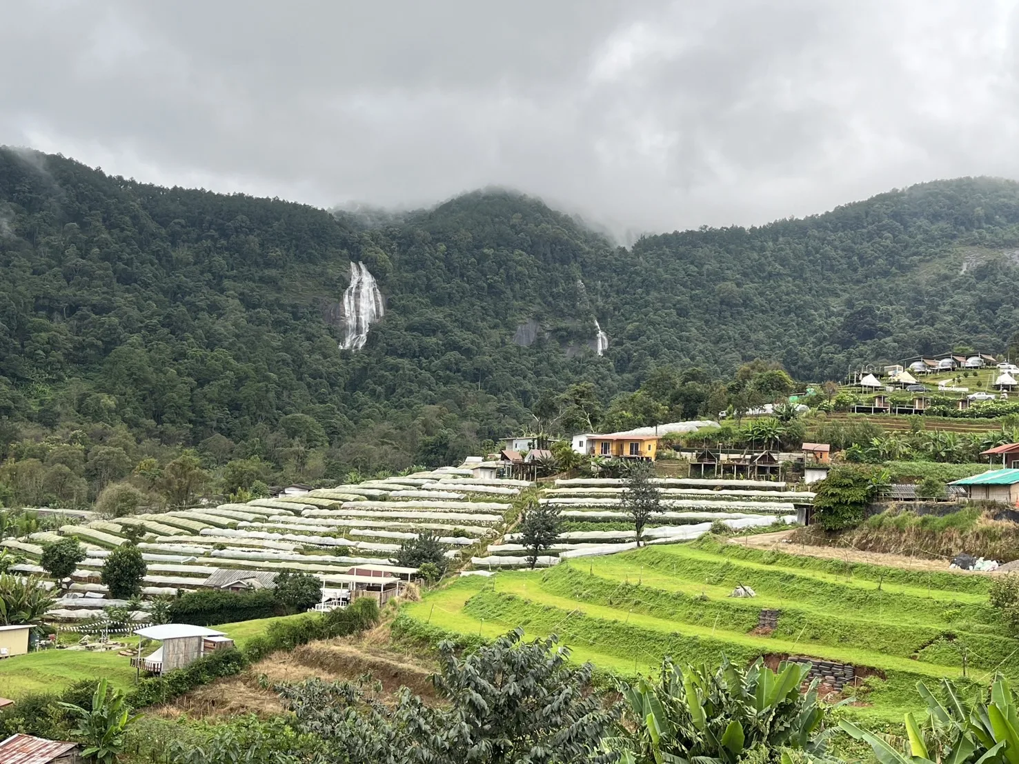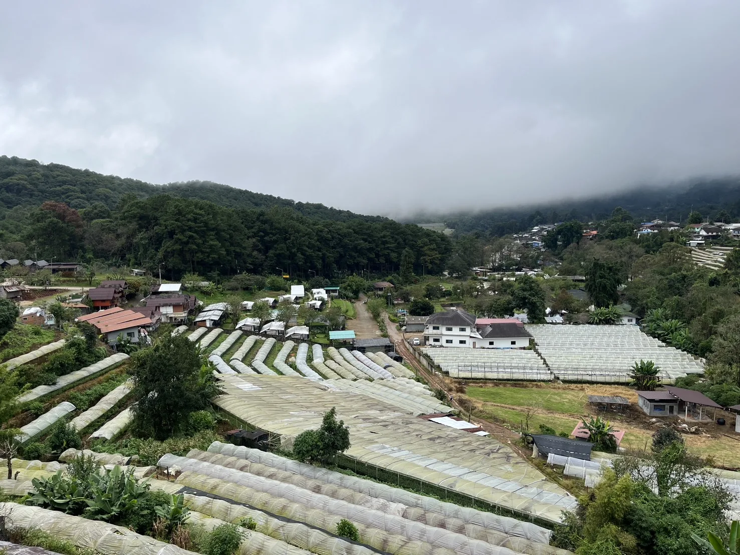 และยังเดินทางเที่ยวชมวิวยอดดอยในหมู่บ้านชาวเขาเผ่าม้งที่ติดกับลานกางเต็นท์ในสวนสนของอุทยานแห่งชาติดอยอินทนนท์ ที่นี่จะมีวิวแปลงดอกไม้หลายชนิดที่สวยงาม เพราะแปลงดอกที่มุงหลังคาพลาสติกสีขาวเป็นขั้นๆเหมือนนาขั้นบันได และด้านหลังสวนดอกจะเป็นน้ำตกสิริภูมิ นักท่องเที่ยวนิยมขึ้นไปถ่ายภาพเก็บไว้เป็นที่ระลึกกันจำนวนมากอีกด้วย.