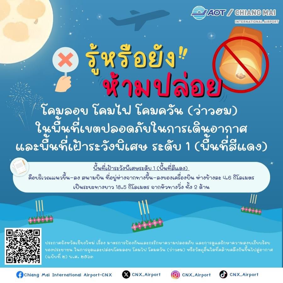 ผู้ที่ต้องการปล่อยโคมลอยในพื้นที่ต่าง ๆ ควรตรวจสอบรายละเอียดการกำหนดพื้นที่โดยติดตั้งแอพพลิเคชัน Google Earth Pro ตามคำแนะนำในประกาศ พร้อมทั้งศึกษามาตรการความปลอดภัยอย่างถี่ถ้วน เพื่อร่วมสร้างบรรยากาศของยี่เป็งที่สวยงาม และส่งเสริมการท่องเที่ยวเชิงวัฒนธรรมของเชียงใหม่ให้เป็นที่จดจำอย่างยั่งยืน