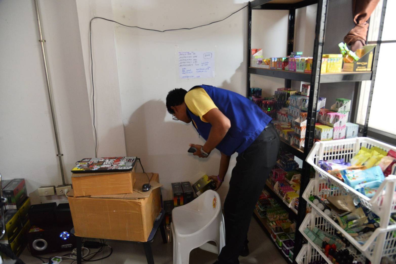 เจ้าหน้าที่จึงได้วางแผนเข้าตรวจสอบร้านดังกล่าว โดยวิธีล่อซื้อ เพื่อเข้าทำการจับกุม และอีกชุดซุ่มดูพฤติกรรมอยู่บริเวณหอพักที่คาดว่าเป็นที่เก็บบุหรี่ไฟฟ้า ซึ่งระหว่างที่ทำการซุ่มดูอยู่ประมาณ 30 นาที ทางร้านมีการออกไปส่งของกว่า 10 ครั้ง และมีไรเดอร์เข้ามารับของอยู่ตลอดเวลา เมื่อทำการตกลงซื้อขายและนัดรับของ โดยแจ้งพิกัดให้มาส่งของบริเวณแยกบ้านดู่เมืองใหม่ โดยผู้ส่งของได้วางของบริเวณหน้าห้องพัก และมีไรเดอร์มารับของออกจากหอพัก ต.บ้านดู่ อ.เมืองเชียงราย โดยใช้มอเตอร์ไซค์ออกมาส่งของ เมื่อมาถึงจุดรับรับเจ้าหน้าที่จึงได้แสดงตัว พร้อมพามาตรวจค้นในบริเวณหอพัก ซึ่งเป็นอาคารสองชั้น จากการตรวจสอบพบผู้ดูแล จำนวน 2 คน เป็นหญิงและชาย จากการตรวจสอบพบบุหรี่ไฟฟ้า และอุปกรณ์ จำนวนกว่า 2,000 ชิ้น มูลค่าหลายแสนบาท ยังพบบัญชีซึ่งมีรายได้ต่อวันไม่ต่ำกว่าวันละ 35,000 บาท