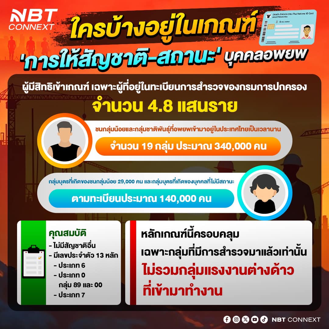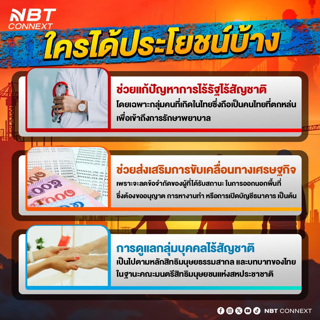 ภายใต้ร่างหลักเกณฑ์ที่คณะรัฐมนตรีมีมติเห็นชอบเมื่อวันที่ 29 ตุลาคม พ.ศ. 2567 นี้ จะส่งผลให้บุคคลที่เข้ามาอยู่ในประเทศไทยเป็นเวลานาน รวมถึงชนกลุ่มน้อย/กลุ่มชาติพันธุ์จำนวนกว่า 335,000 คน ได้รับการกำหนดสถานะต่างด้าวเข้าเมืองโดยชอบด้วยกฎหมาย (ใบสำคัญถิ่นที่อยู่ถาวร) และกลุ่มบุตรที่เกิดในประเทศไทยจำนวนกว่า 142,000 คน มีสิทธิได้รับสัญชาติไทย โดยผู้ที่ได้รับสถานะต่างด้าวเข้าเมืองโดยชอบด้วยกฎหมายมีใบสำคัญถิ่นที่อยู่ถาวรจะสามารถยื่นขอสัญชาติไทยได้ หลังจากถือสถานะดังกล่าวแล้วเป็นเวลา 5 ปี