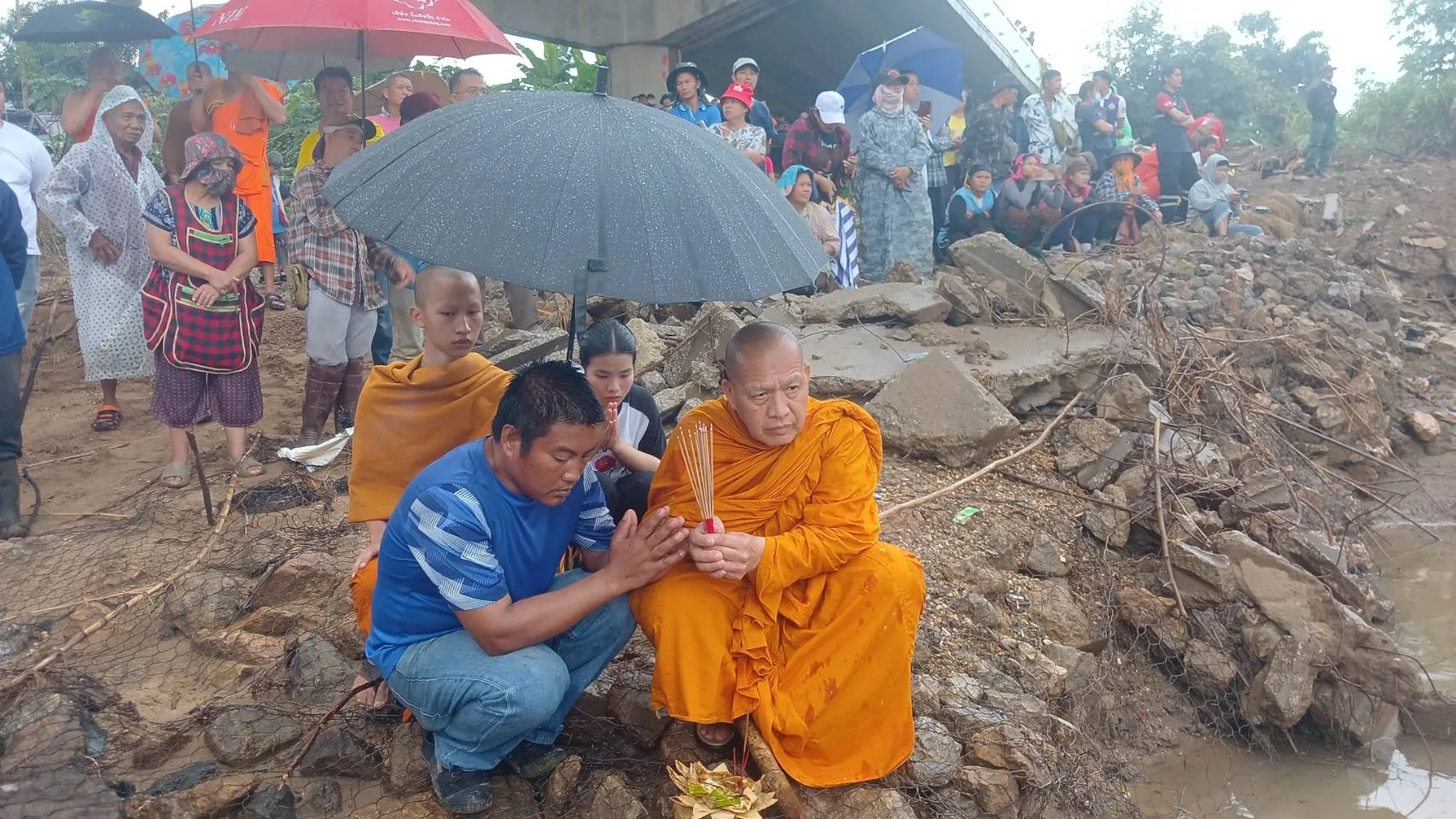 ทางเจ้าอาวาสจึงได้รีบเดินทางมาที่เกิดเหตุพร้อมกับจุดธูป 16 ดอก เพื่อเปิดทาง พระแม่คงคาและพระแม่ธรณีเจ้าที่เพื่อขอดลบันดาลให้เจ้าที่เจ้าทางเปิดทางค้นหาร่างสามเณรเติ้ลพบเจอได้เร็วไว ซึ่งจะได้นำร่างไปบำเพ็ญกุศลศพตามศาสนาต่อไป