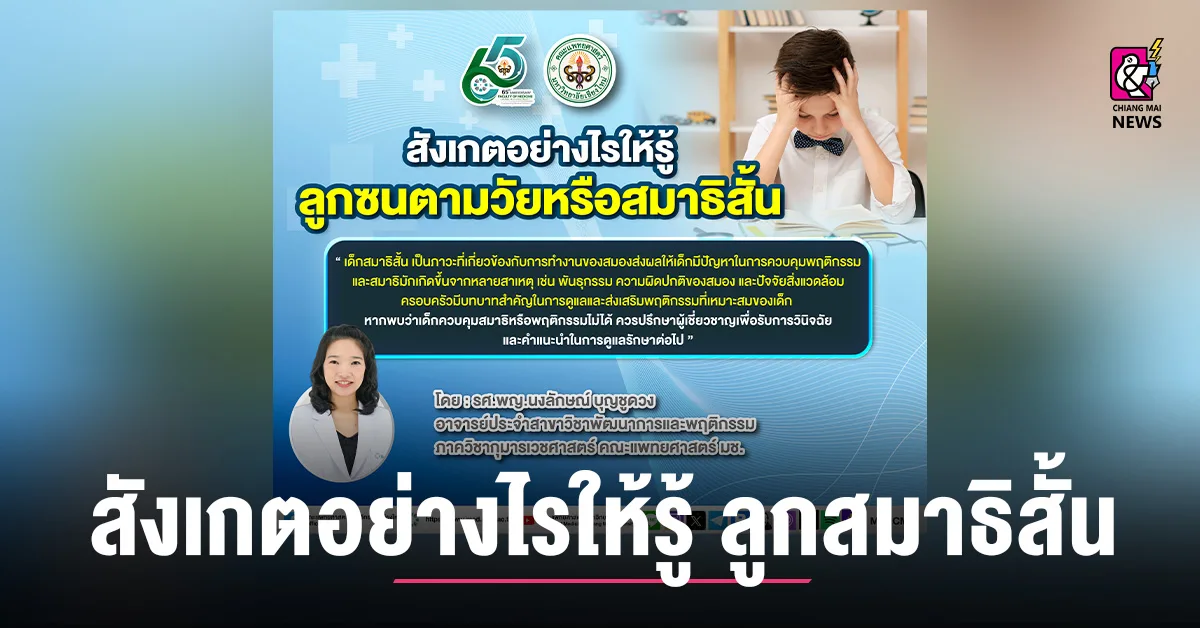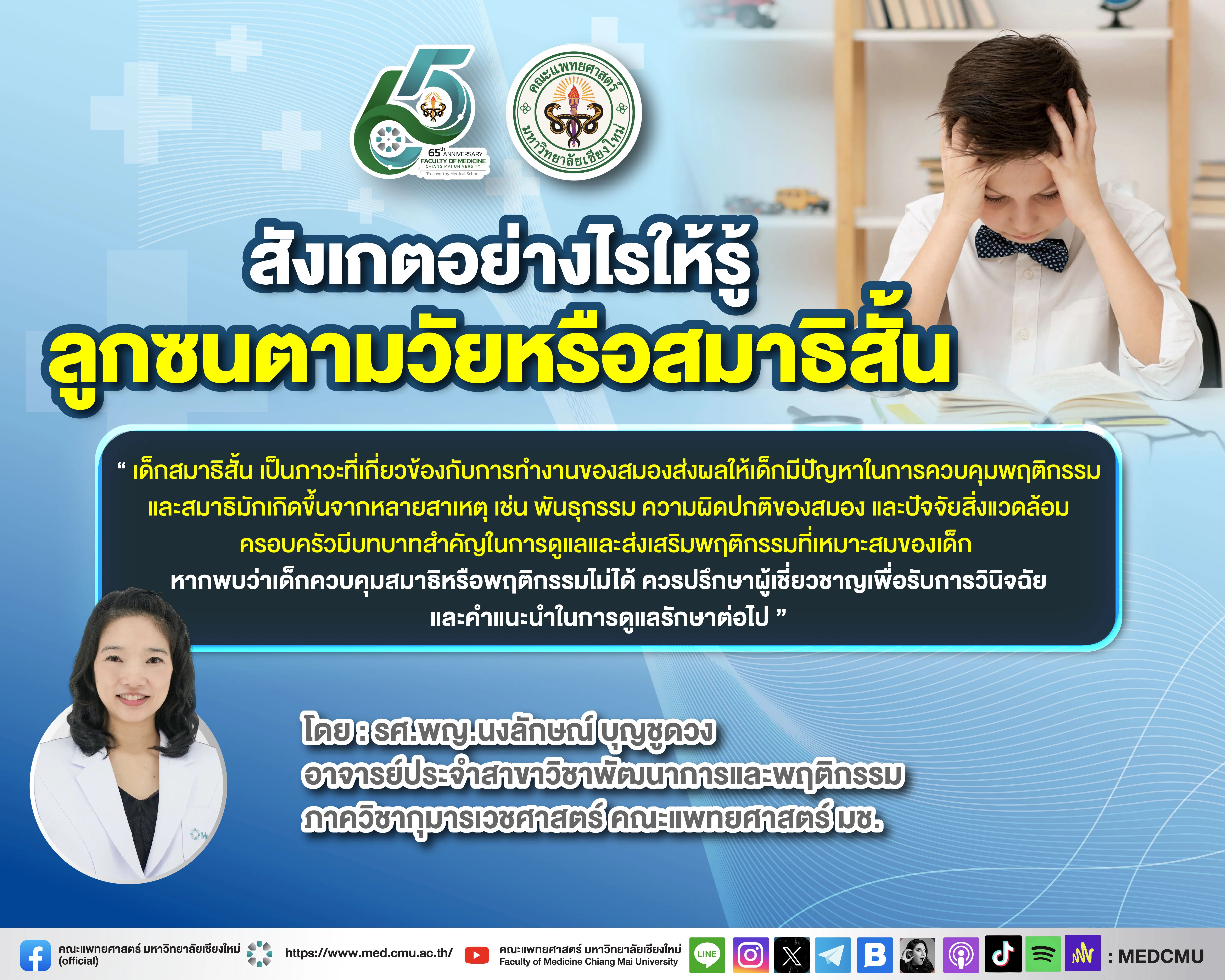 ขอบคุณข้อมูลจาก : รศ.พญ.นงลักษณ์ บุญชูดวง อาจารย์ประจำสาขาวิชาพัฒนาการและพฤติกรรม ภาควิชากุมารเวชศาสตร์ คณะแพทยศาสตร์ มช.